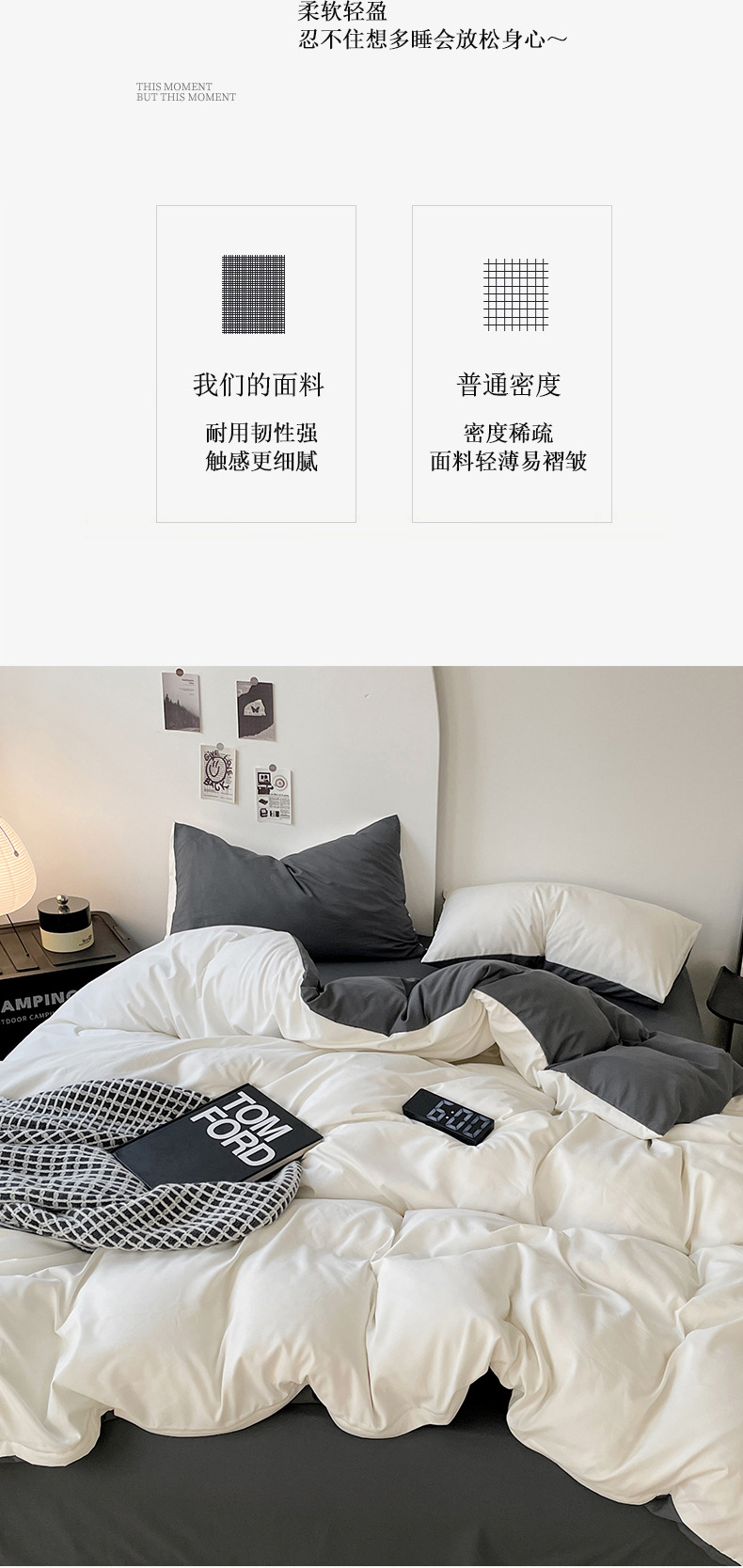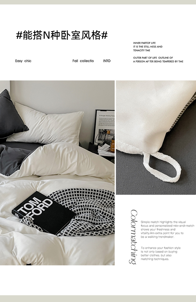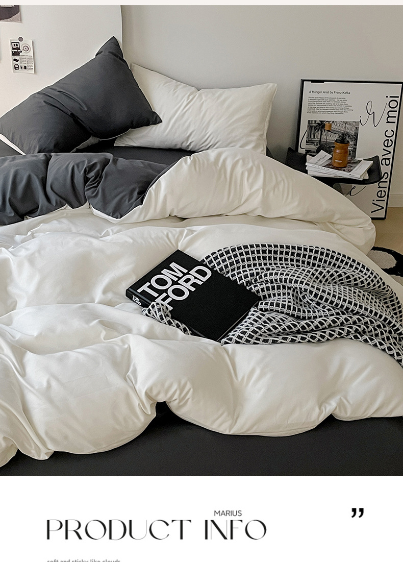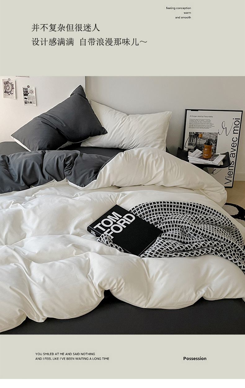 Комплект постельного белья в стиле минимализм из четырех предметов, свежий и простой однотонный комплект из стираного хлопка: простыня, пододеяльник, комплект из трех предметов для студенческого общежития
