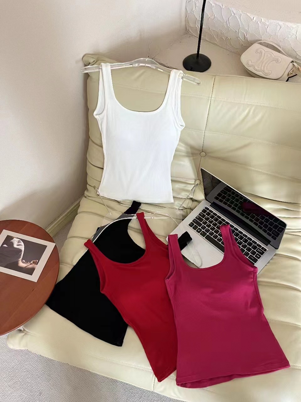 Летний топ без рукавов для женщин в американском стиле «все в одном» с красивой спинкой и подушечками для груди с внешними топами без рукавов