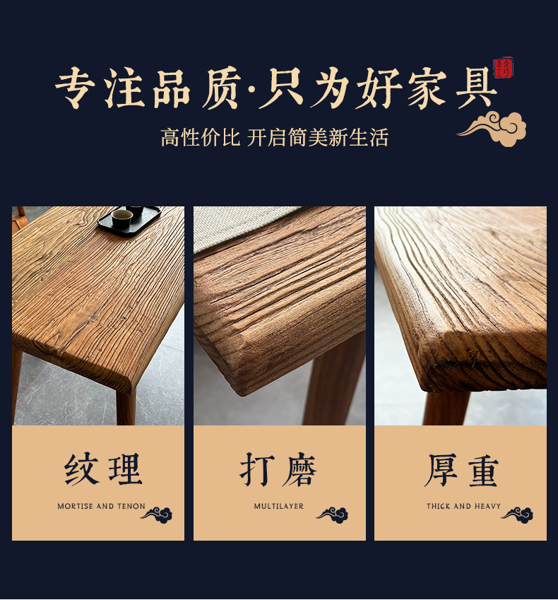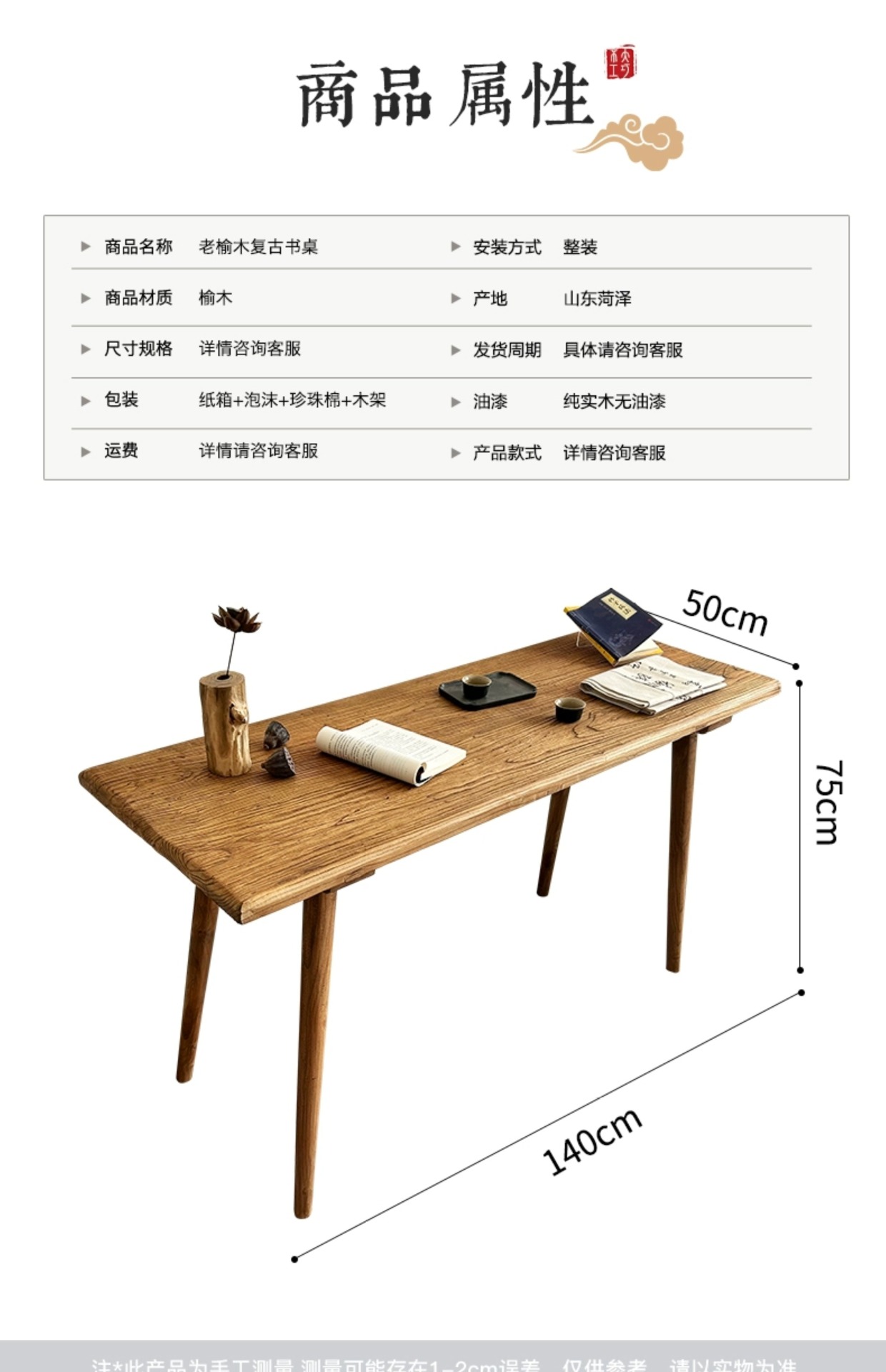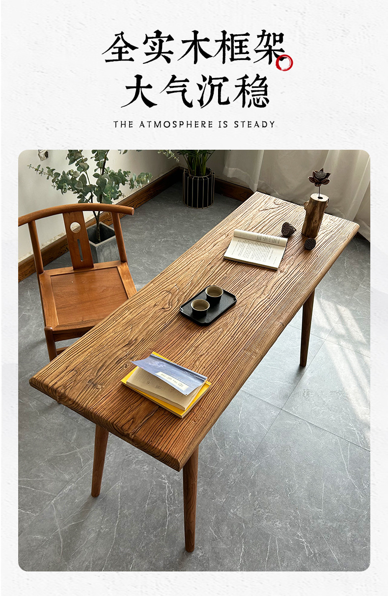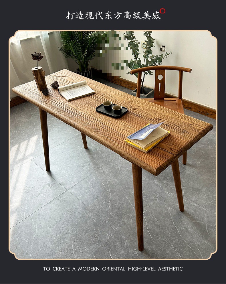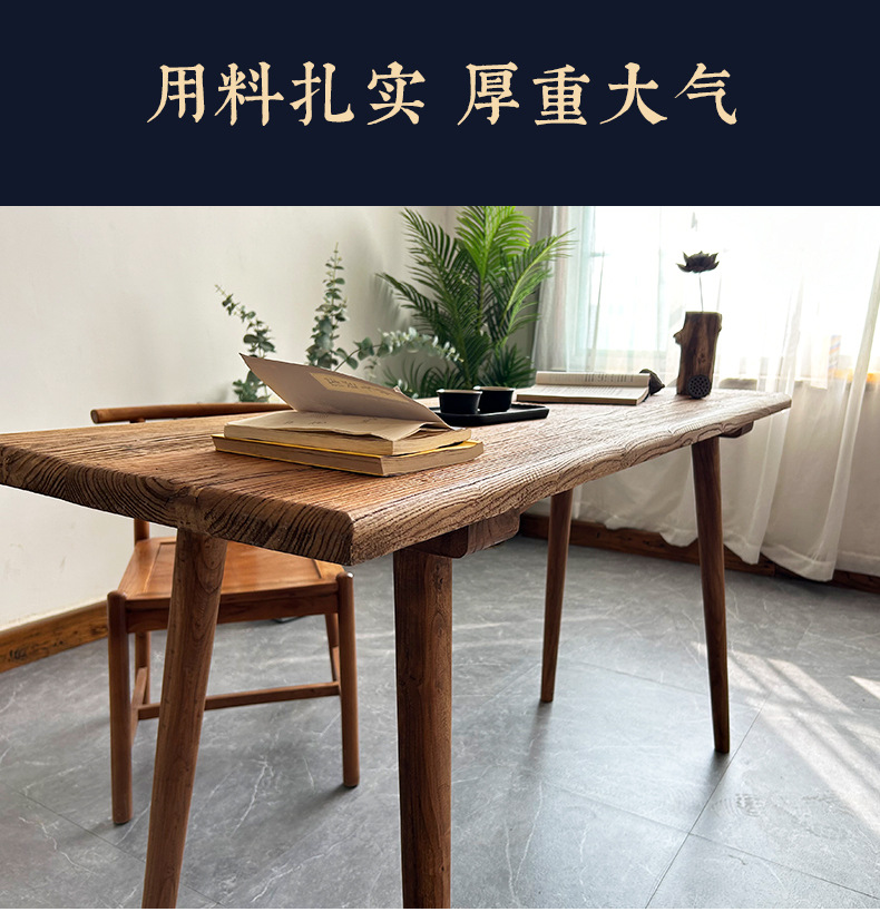 Стол обеденный большой из массива дерева в стиле ретро, новый китайский стиль, для гостиной, офиса, простой домашний, из старого дерева, из ольхи.