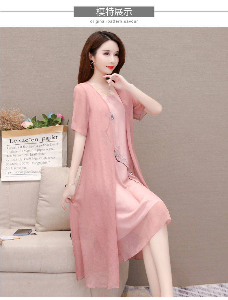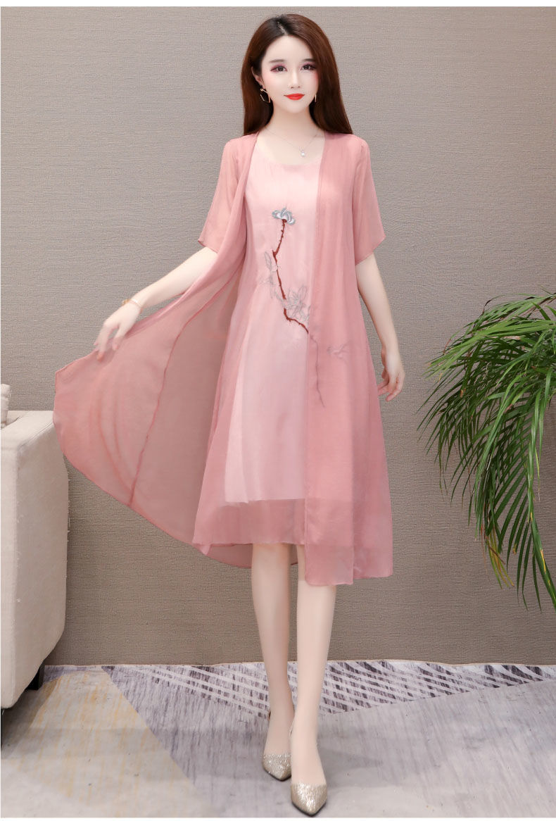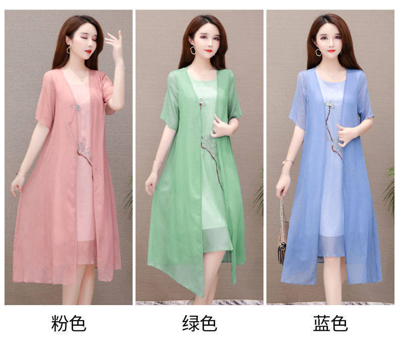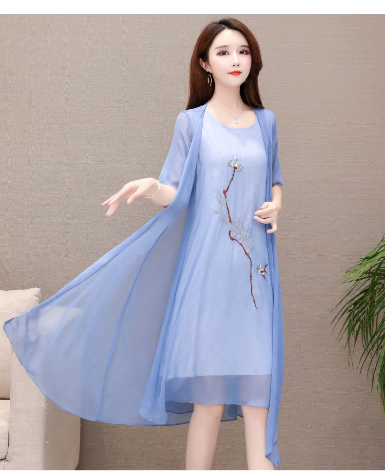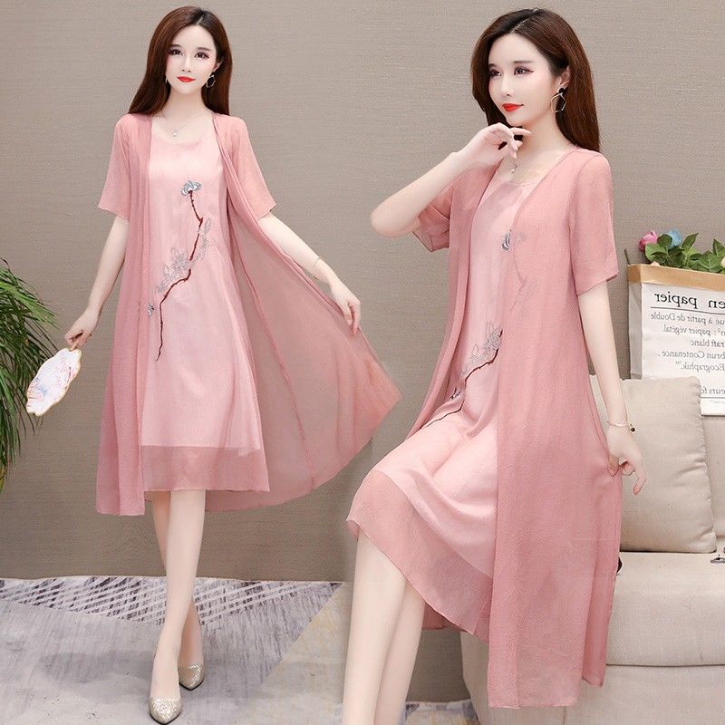 Плюс размер, комплект из двух предметов с вышивкой, весна 2025, новое элегантное шифоновое платье средней длины династии Хань, закрывающее живот, для женщин