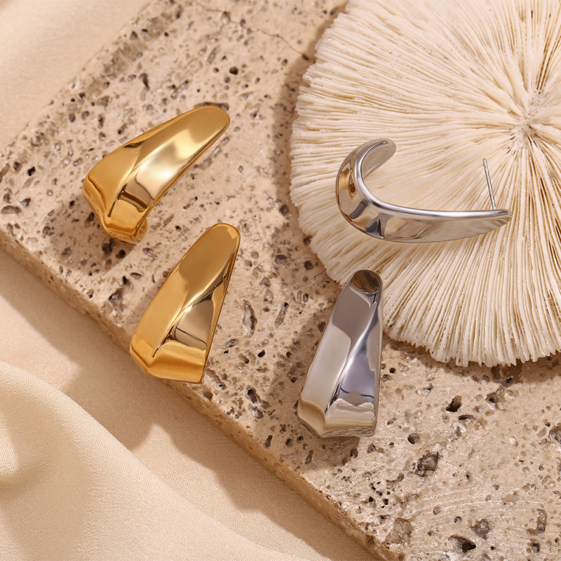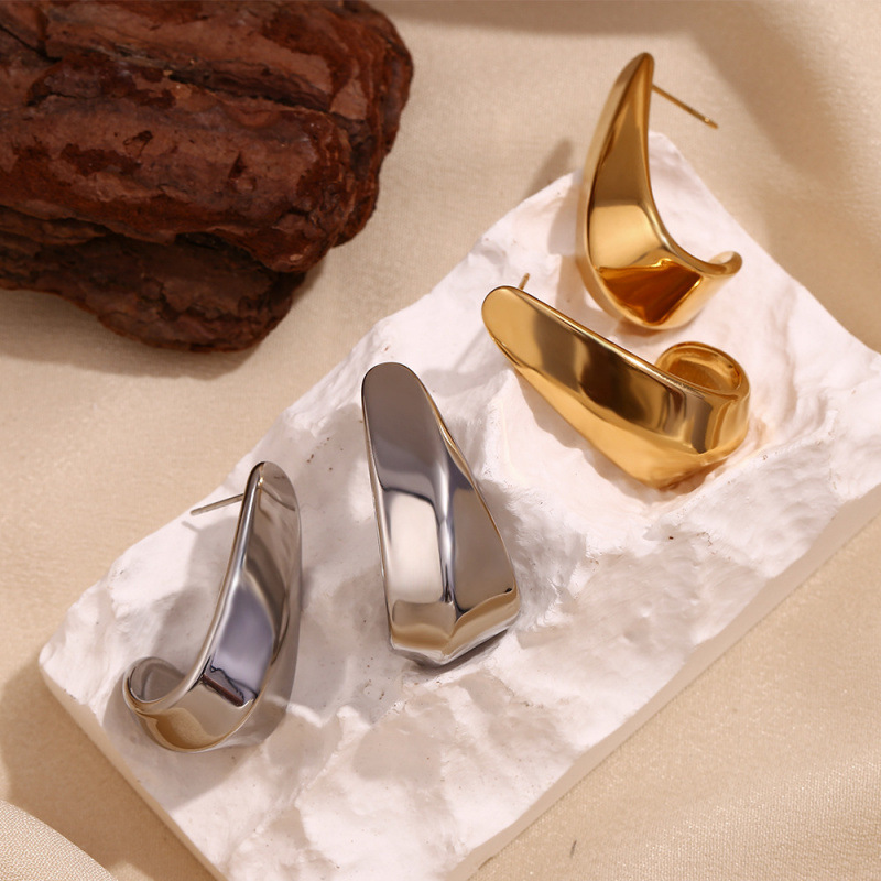 Европейские и американские модные нишевые элегантные креативные стильные серьги из нержавеющей стали с покрытием из 18-каратного золота, полые изогнутые серьги-крючки для женщин