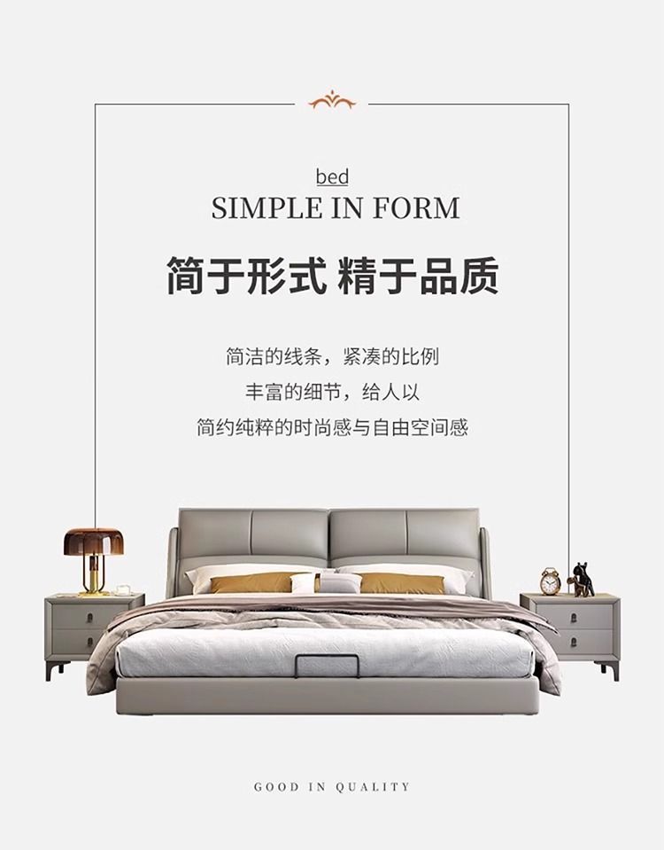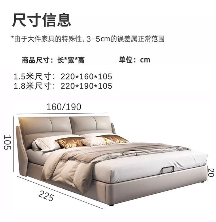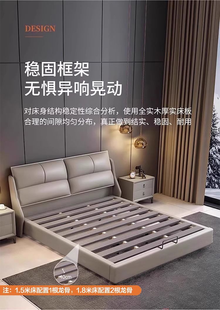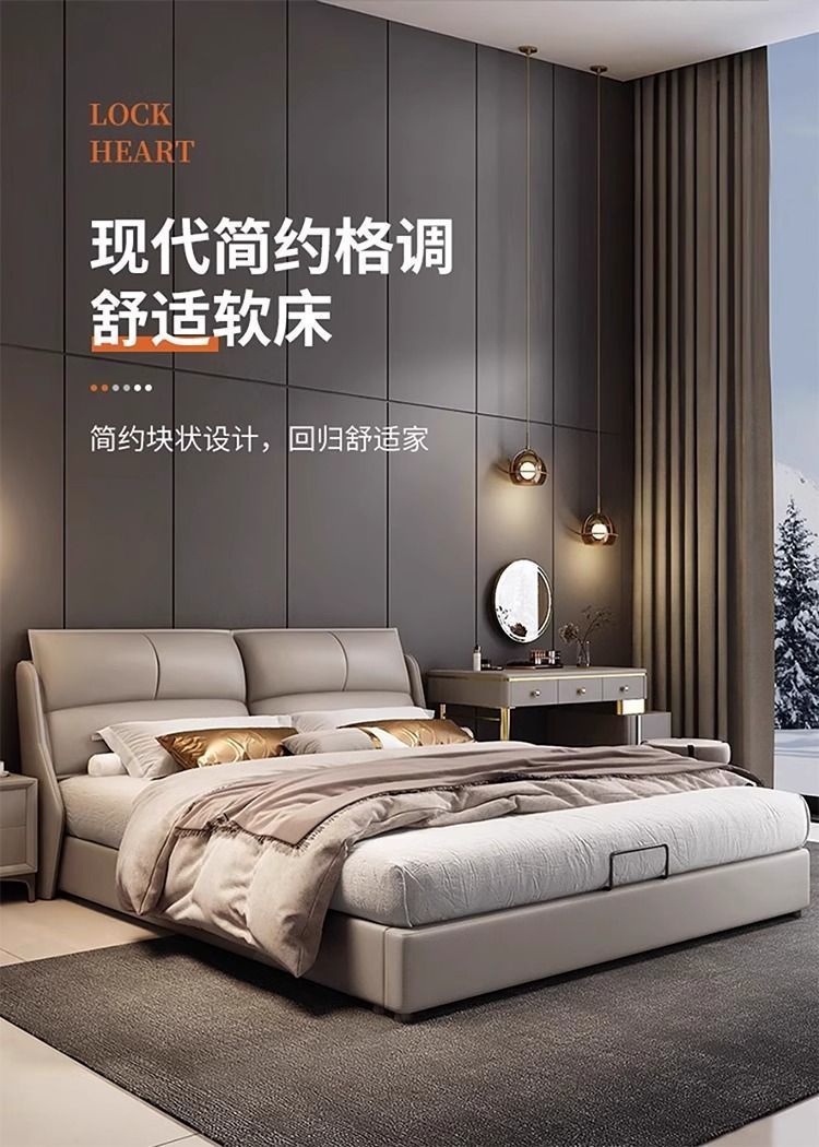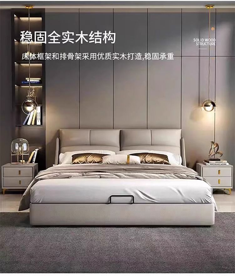 Легкая роскошная кожаная кровать в итальянском стиле, простая современная маленькая квартира, 1.8m двуспальные кровати, главная спальня, свадебная кровать, мягкая кровать с местом для хранения вещей 1,5 м.