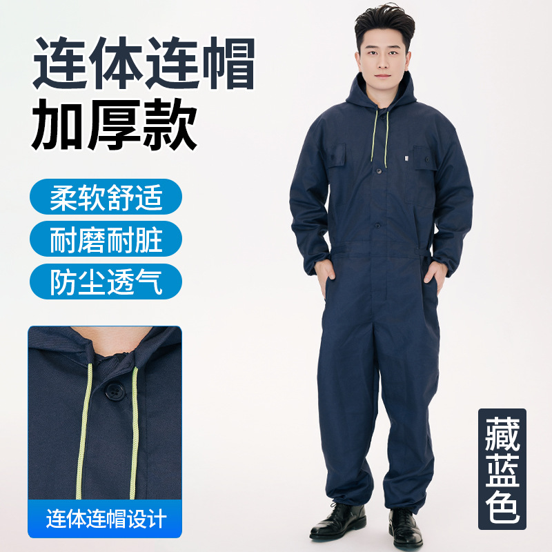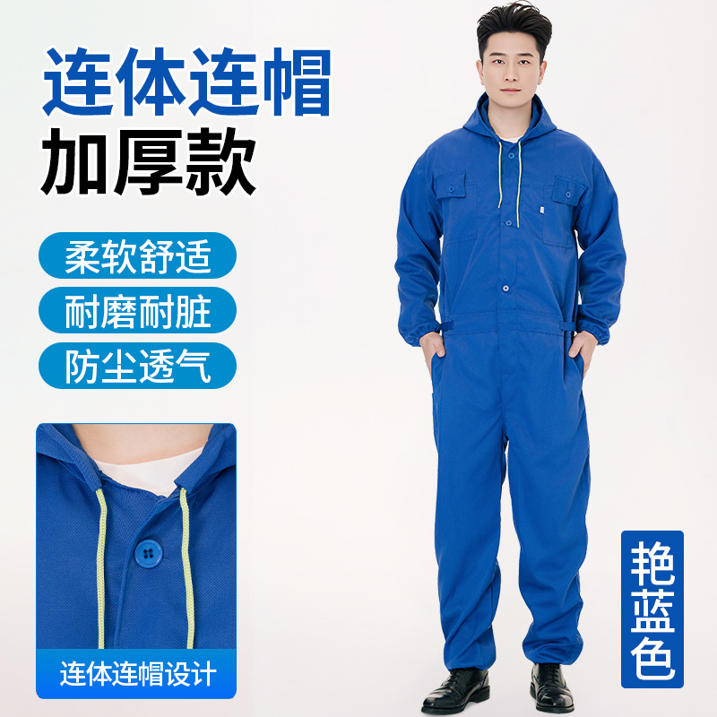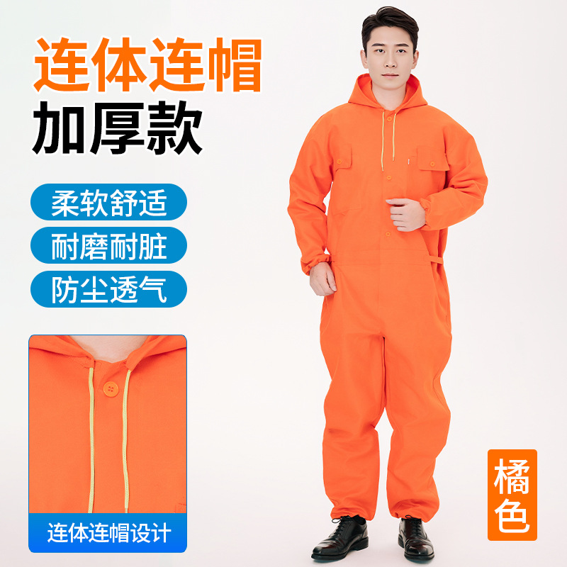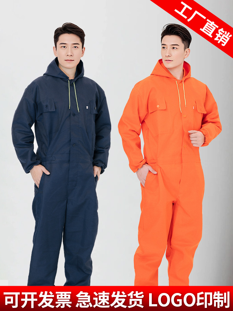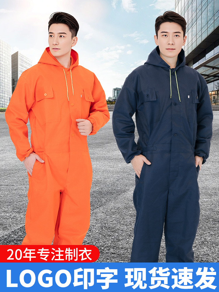 Утолщенная цельная рабочая одежда с капюшоном для мужчин, ремонтная бригада, противообрастающий и пылезащитный цельный костюм, износостойкий защитный костюм с длинными рукавами, с принтом.