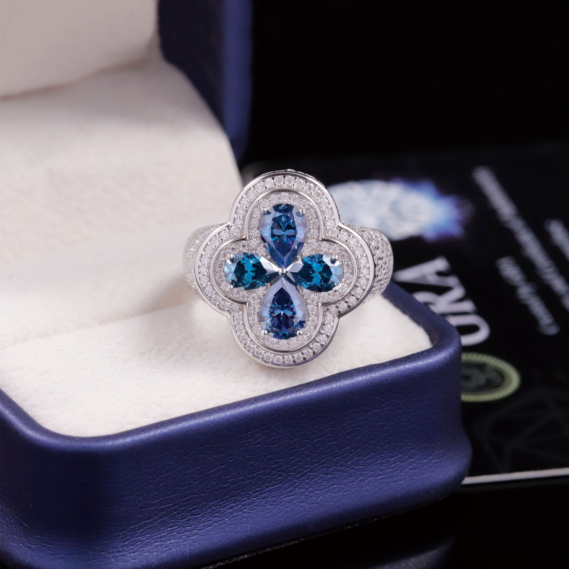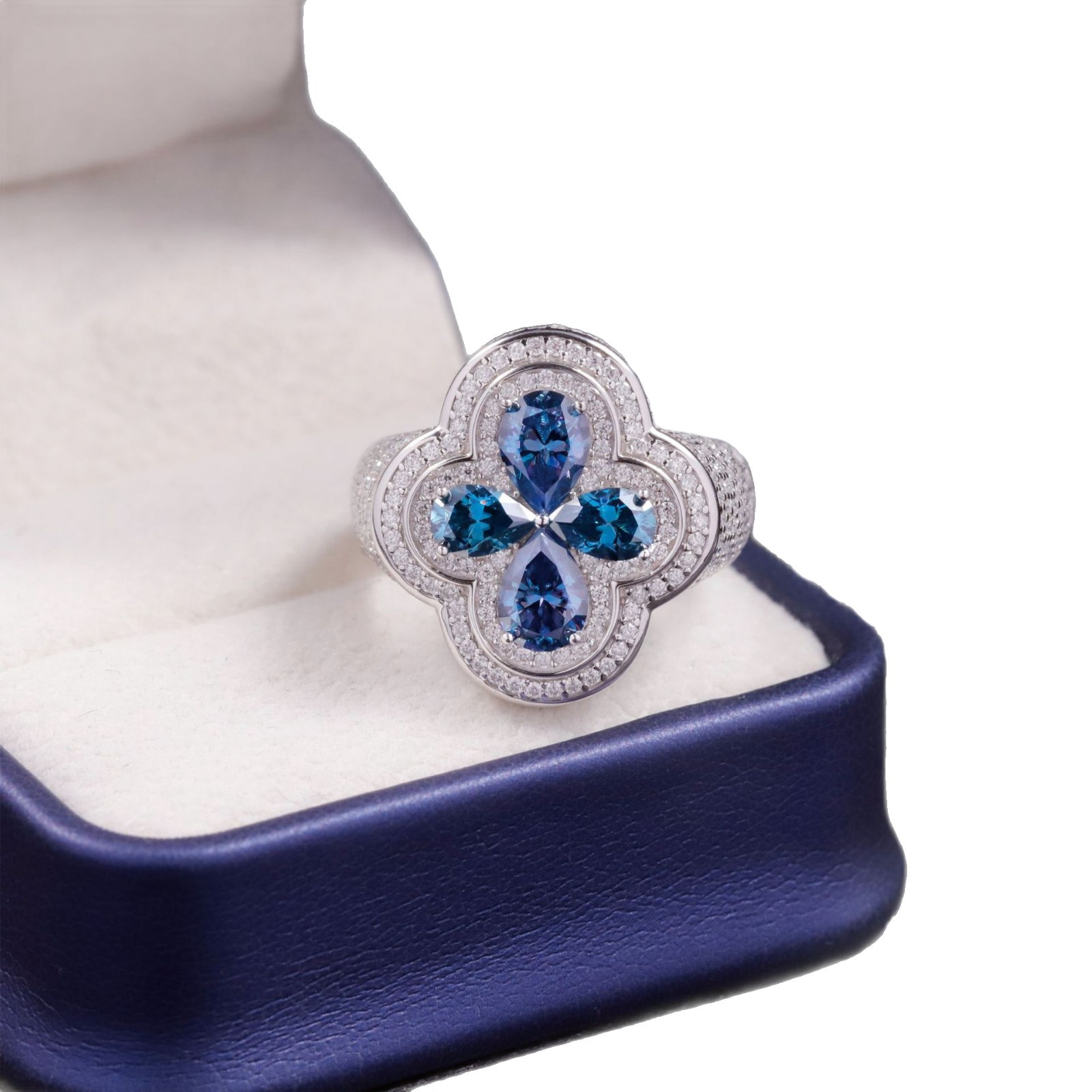 Модное кольцо в стиле лёгкой роскоши с синим четырёхлистным клевером, серебро S925, инкрустированное высококачественным муассанитом цвета D, эксклюзивное кольцо премиум-класса.