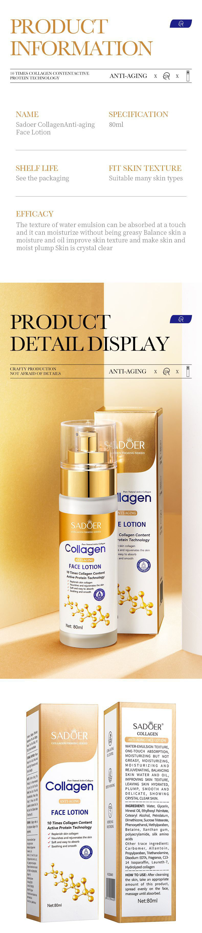 Кросс-бордерная серия коллагеновых средств SADOER: увлажняющий крем для лица и лосьон для тела, прямые поставки с фабрики на экспорт в Россию