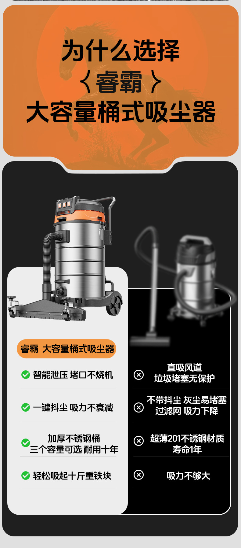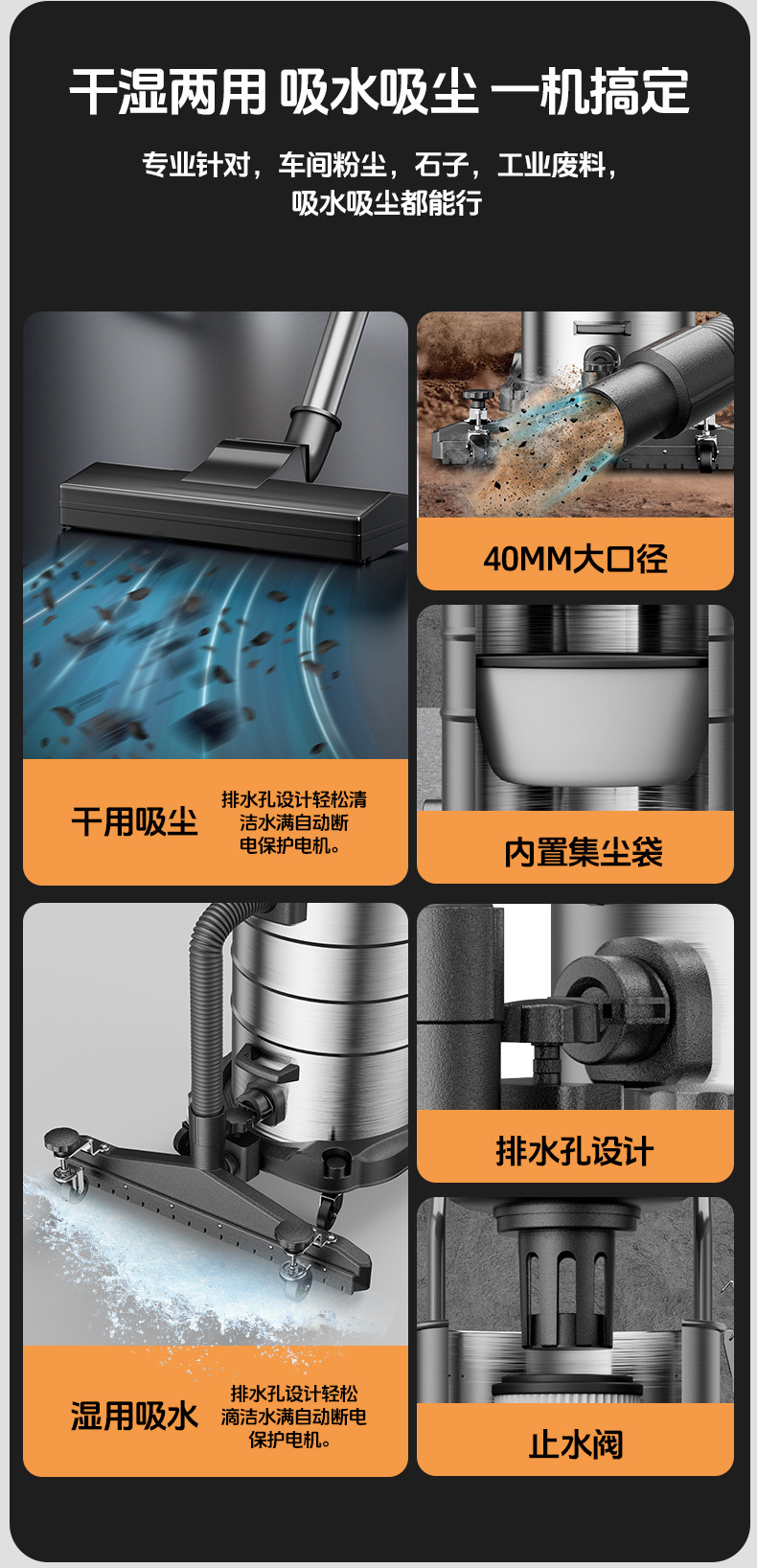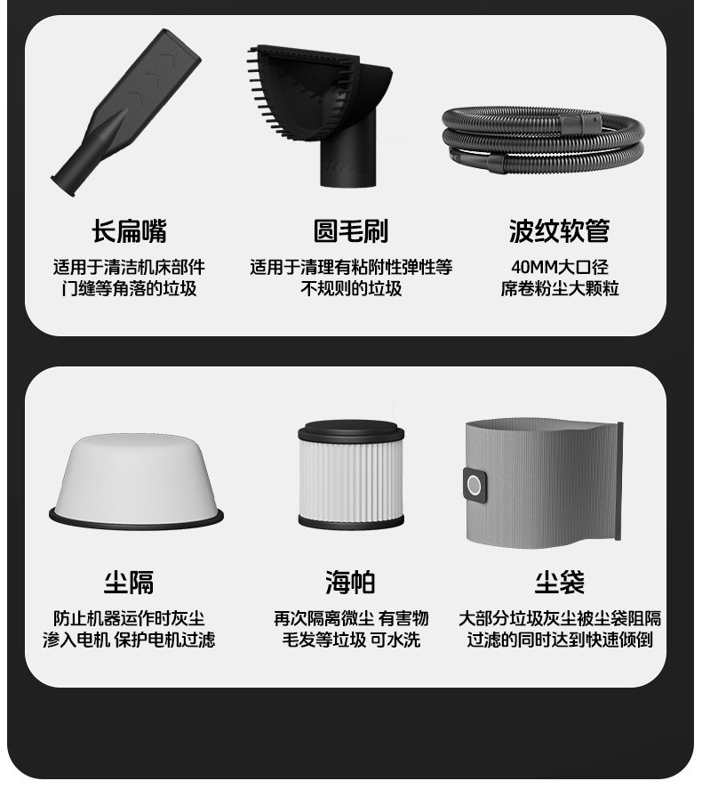 Флагманская модель объемом 40 л, мощностью 3200 Вт.; 70 л [6500 Вт — двигатель с двойным медным сердечником] встряхивание пыли в один клик + 3m трубки; Коммерческая модель с присоской-70 л [двигатель с двойным медным сердечником 6500 Вт] встряхивание пыли в один клик + 5m трубки; Промышленная модель-70 л супервсасывания [8300 Вт-три двигателя с медным сердечником] встряхивание пыли в один клик + 5m трубки + трехскоростная регулировка; Модель с присоской - супервсасывание 70 л [8300 Вт - двигатель с тремя медными сердечниками] встряхивание пыли в один клик + 5m трубки + трехскоростная регулировка; Коммерческая модель-80L [6700 Вт-двойной медный большой двигатель] встряхивание пыли в один клик + 3m трубки; Промышленная модель-80L супервсасывания [8600 Вт-три больших медных двигателя] встряхивание пыли в один клик + 5m трубки + трехскоростная регулировка; Модель с присоской - супервсасывание 80 л [8600 Вт - три больших медных двигателя] встряхивание пыли в один клик + 5m трубки + трехскоростная регулировка; Коммерческая модель-100L [6900 Вт-двойной медный большой двигатель] встряхивание пыли в один клик + 3m трубки; Промышленная модель - супервсасывание 100 л [8900 Вт - три больших медных двигателя] встряхивание пыли в один клик + 5m трубки + трехскоростная регулировка; Модель с присоской - супервсасывание 100 л [8900 Вт - три больших медных двигателя] встряхивание пыли в один клик + 5m трубки + трехскоростная регулировка
