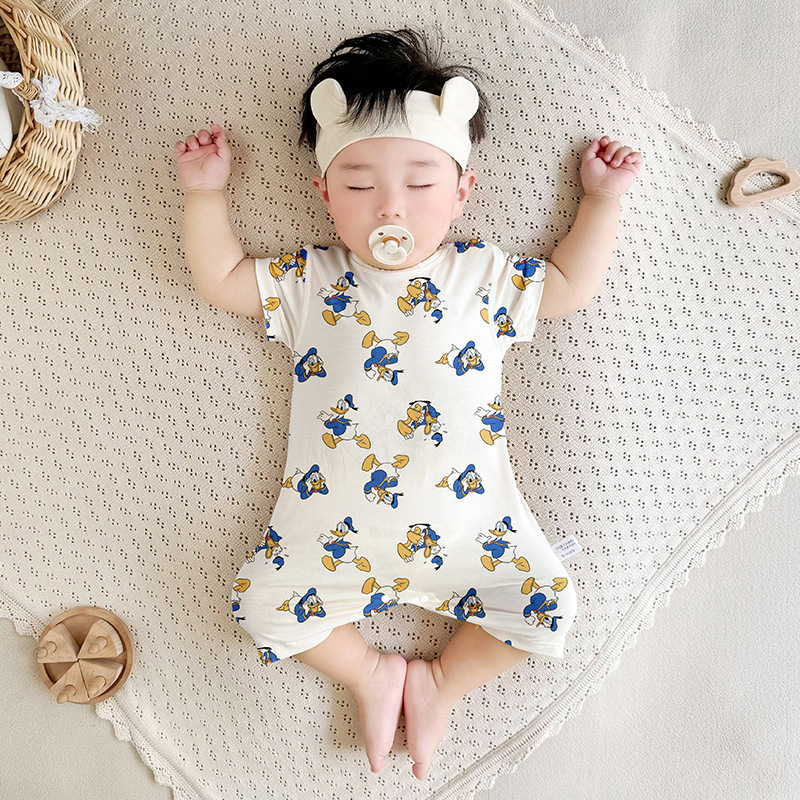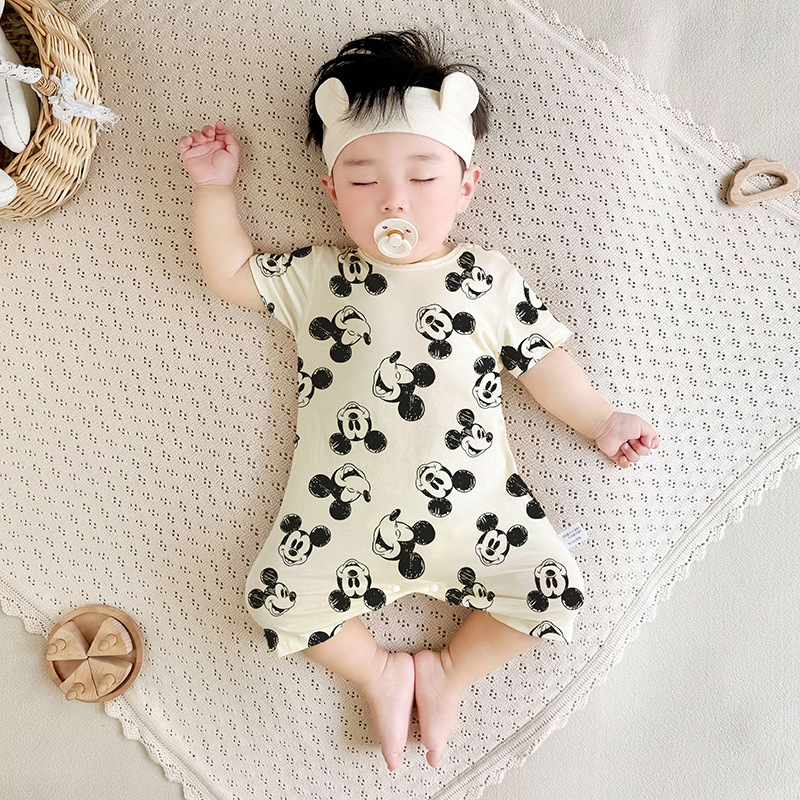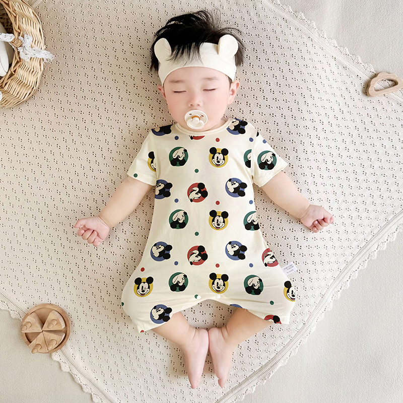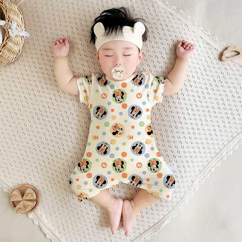 Летний комбинезон для новорожденных с короткими рукавами, тонкий, бесшовный, для мальчиков и девочек, летний ромпер.