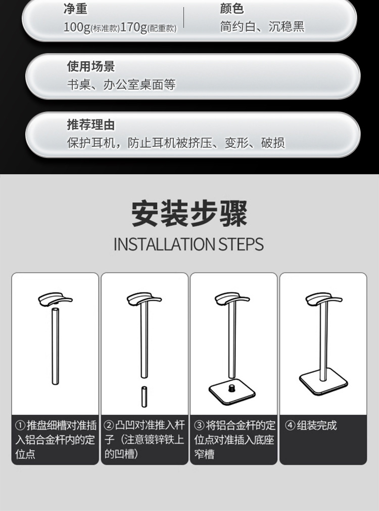 Подставка для гарнитуры для киберспорта, изготавливаемая из алюминиевого сплава, с отсоединяемой настольной подставкой для хранения и демонстрации, в стиле киберспорта