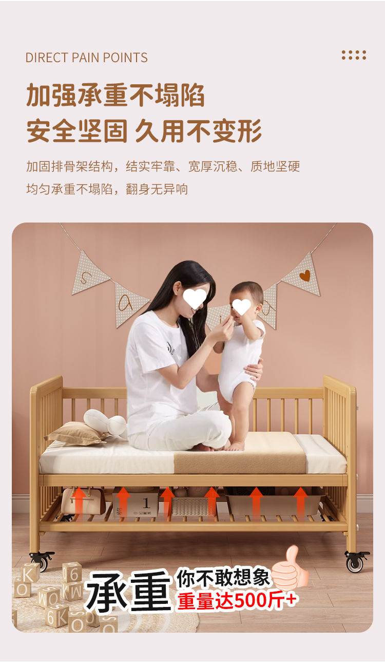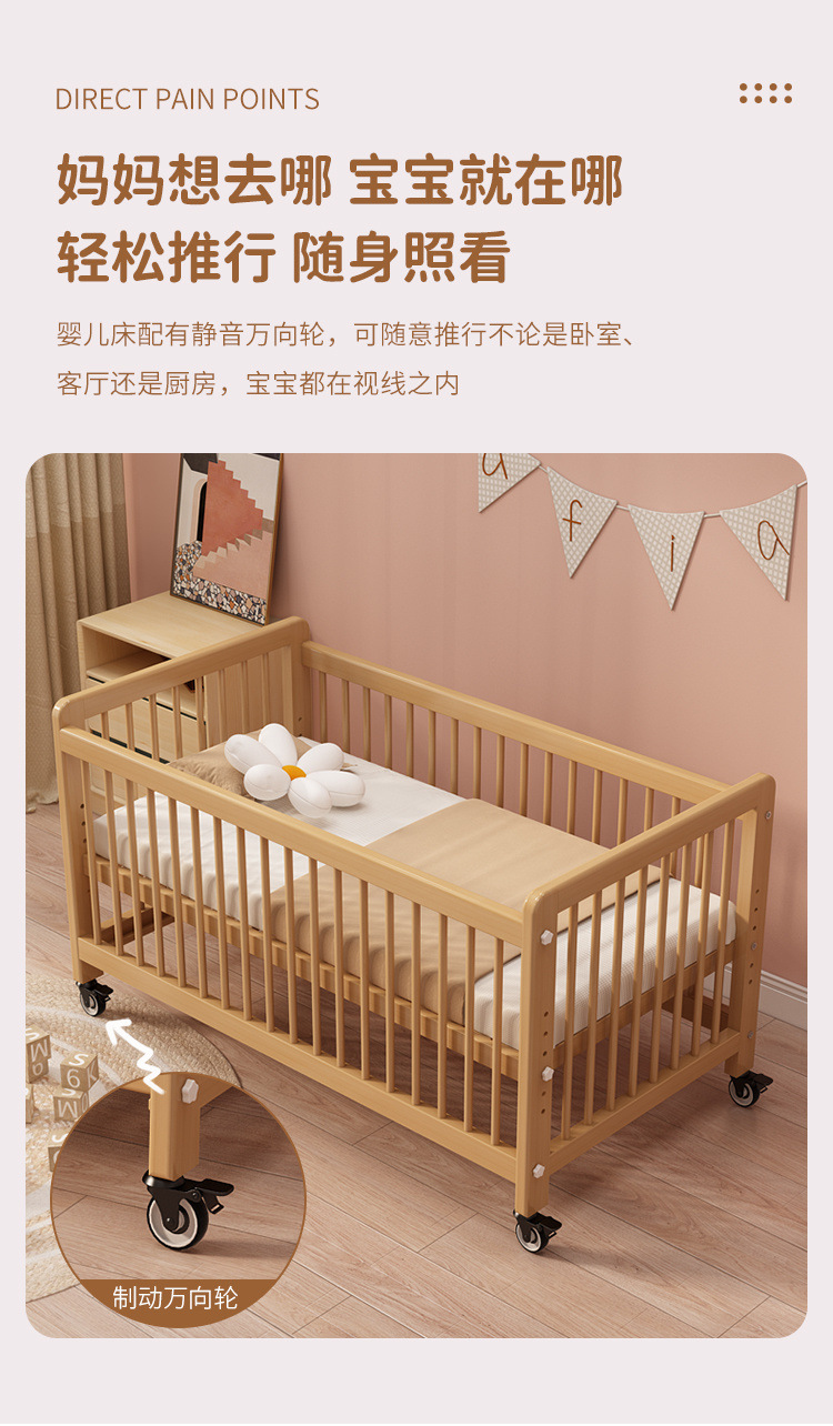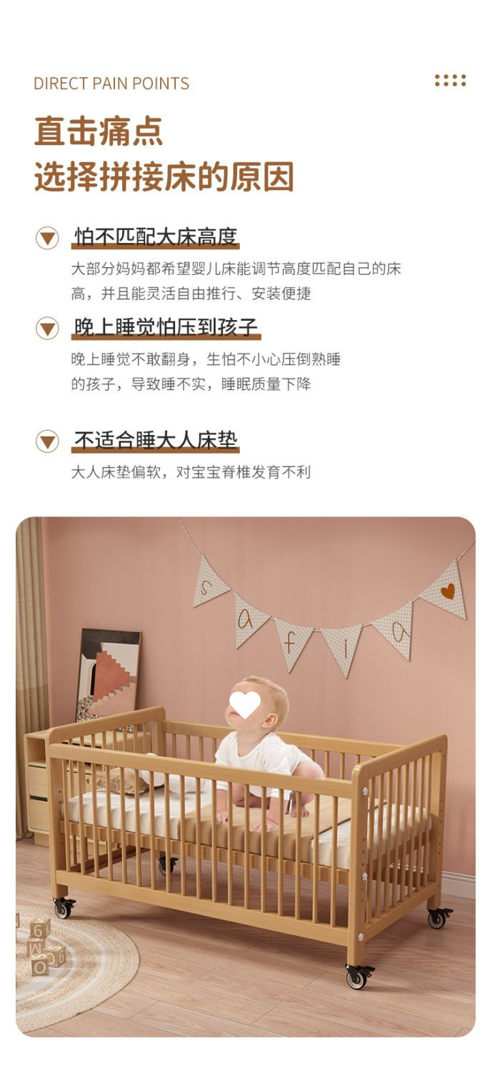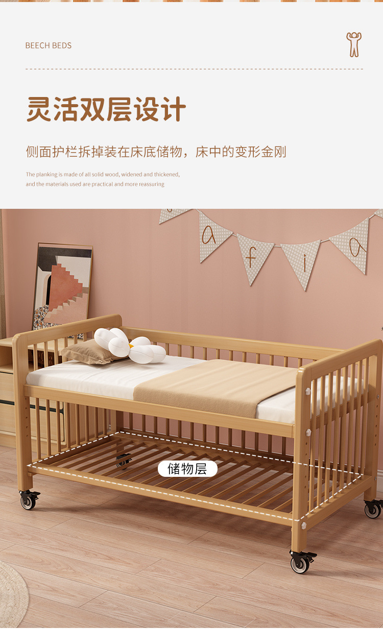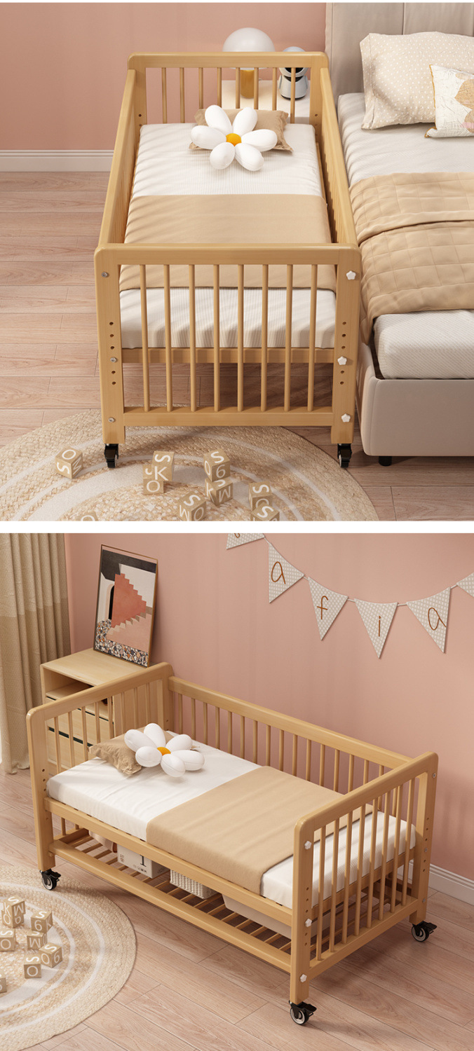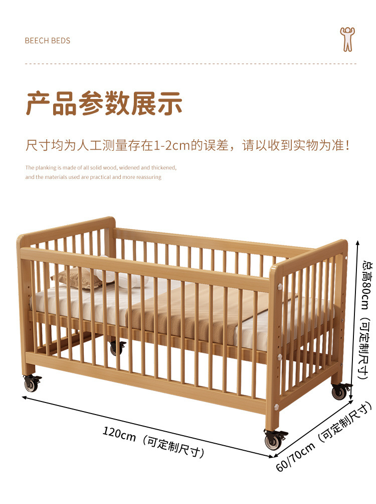 [Полностью буковое дерево] кроватка. Регулируемая высота. Съемный; [Полностью буковое дерево] детская кроватка.детский матрас