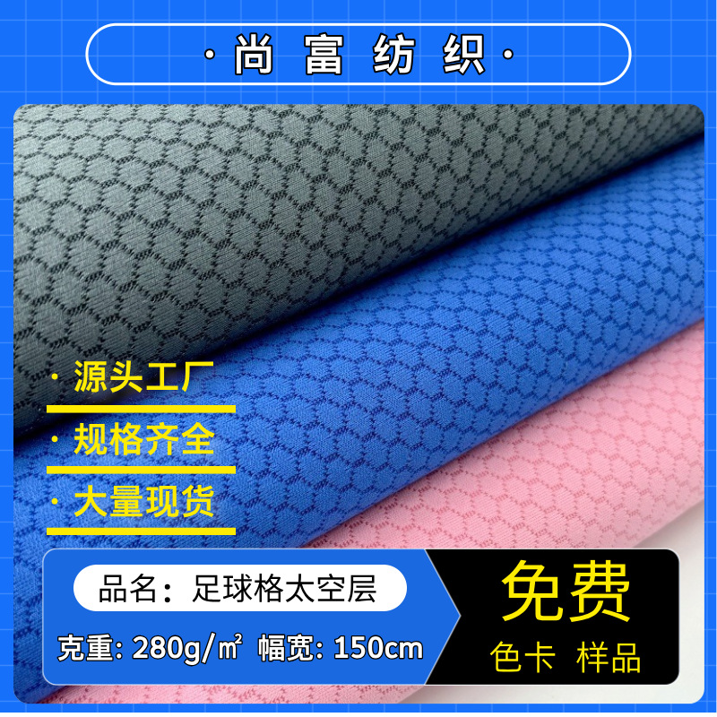 Полиэстеровая жаккардовая воздушная сетка для футбола, эластичный пространственный слой, материалы для одежды, сумок и обуви, трикотажные ткани