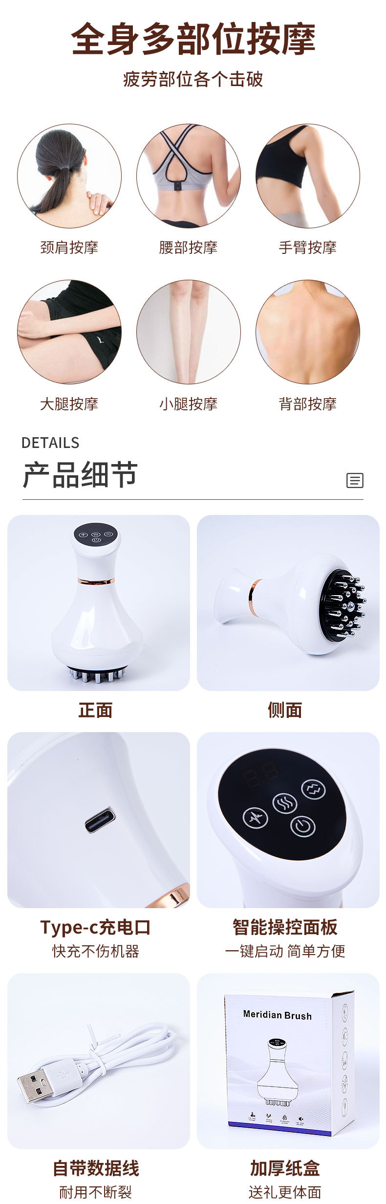 Портативный умный массажер для всего тела, электрическая щетка-меридиан, скребковый массажер, перезаряжаемый ручной, можно использовать для всего тела
