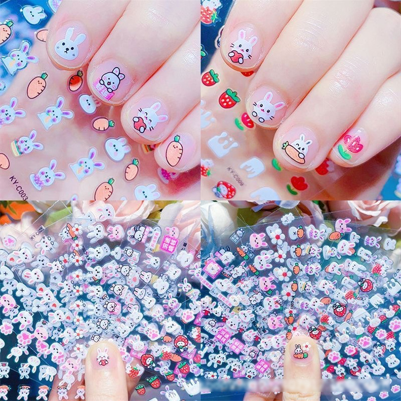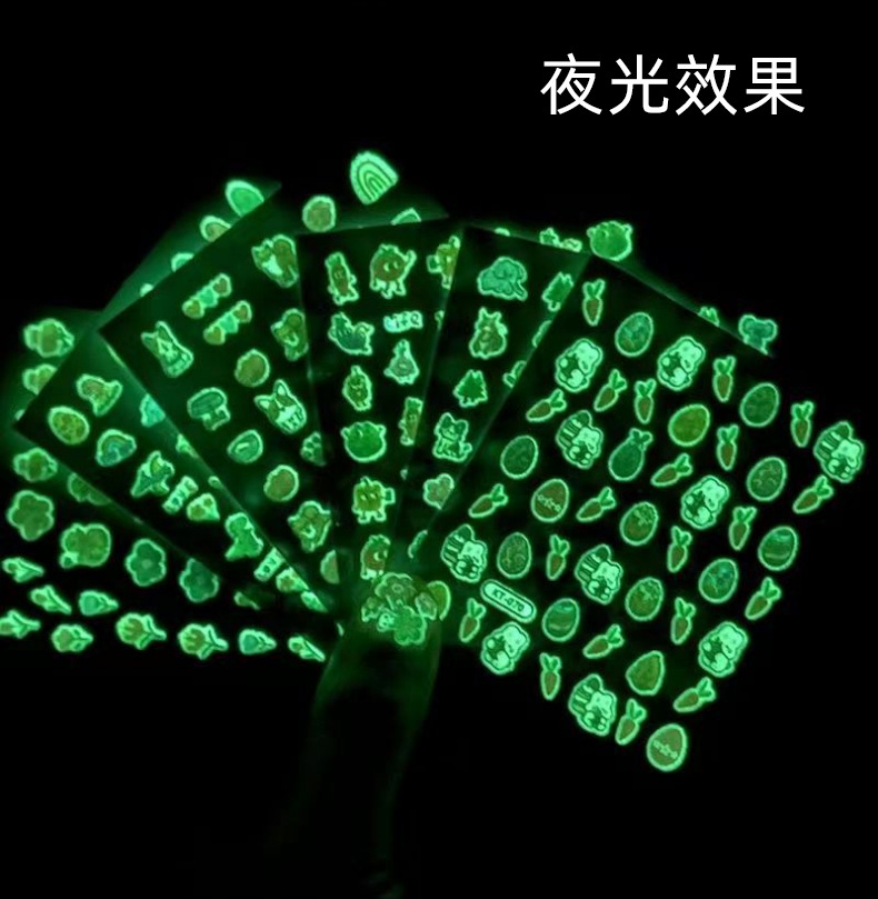 Детские наклейки для ногтей, светящиеся милые наклейки для ногтей с кроликом, наклейки для ногтей в детском саду, наклейки для ногтей, маленькие подарки для девочек