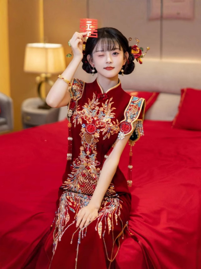 Свадебное платье Xiuhe 2025, новое китайское свадебное платье для невесты, облегающее платье для помолвки, юбка, летнее платье с короткими рукавами