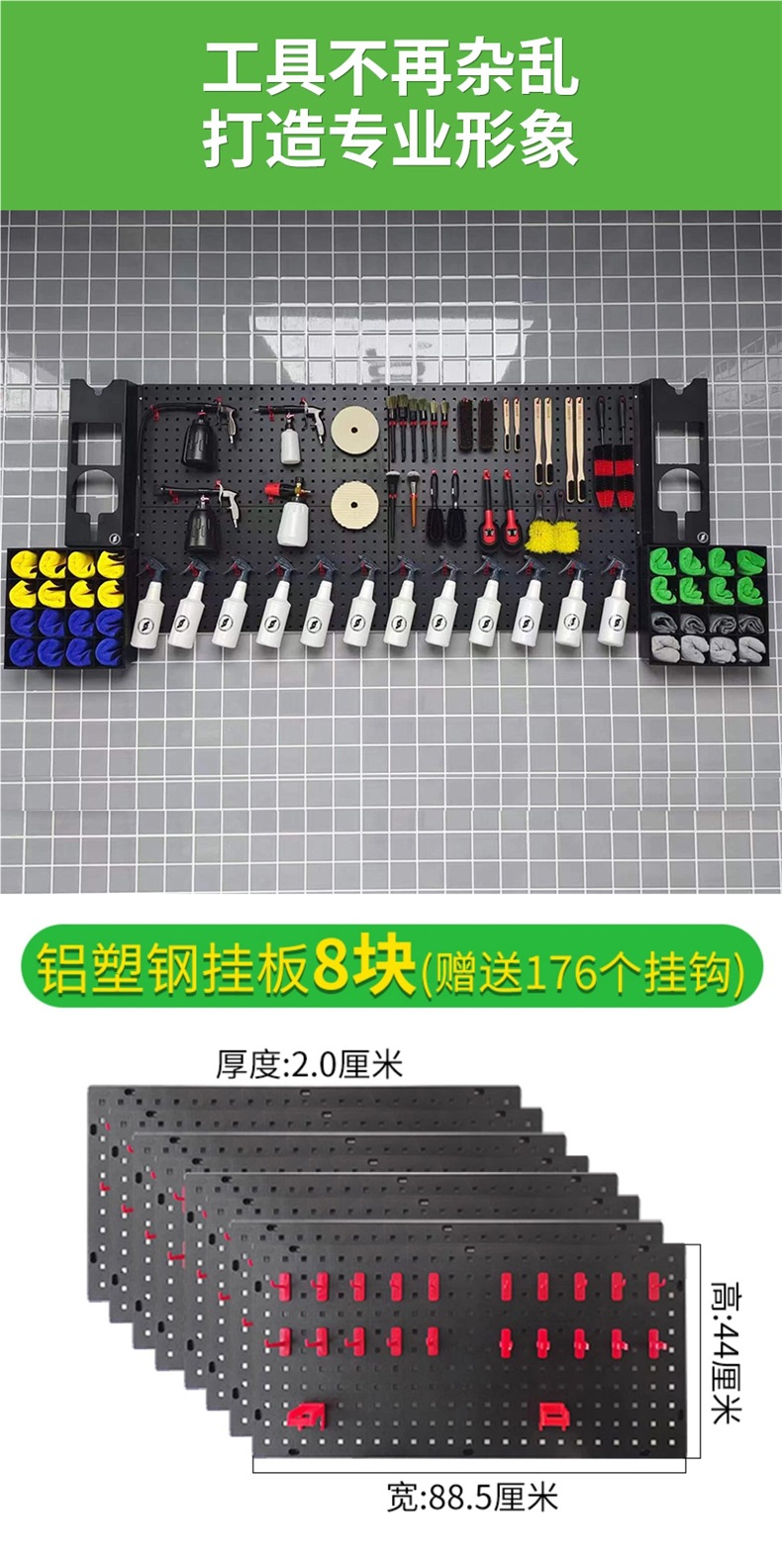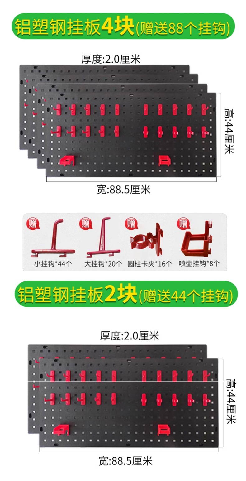 Популярная подвесная доска из пластика и стали поставляется с 22 крючками и весит 40kg кг.; 2 пластиковые стальные подвесные доски с 44 крючками.; 4 подвесных доски из пластиковой стали поставляются с 88 крючками весом 40kg кг.; 8 подвесных досок из пластиковой стали поставляются с 176 крючками весом 40kg кг.; Черная подставка для полировальной машины поставляется с двумя коробками для полировального воска и двумя дополнительными крючками.; Независимый зажим для подушечек для ног из пластиковой стали, 1 комплект из 4 штук; 5 специальных распылителей/держателей абразива для пластиковых пластин; 20 больших крючков; 10 роликовых зажимов; 5 специальных крючков для лейки для пластиковых стальных подвесных досок.; 1 подвесная пластина из холоднокатаной стали поставляется с 20 крючками, утолщенными.; 2 подвесных пластины из холоднокатаной стали поставляются с 40 крючками, утолщенными.; 4 подвесные пластины из холоднокатаной стали поставляются с 80 крючками, утолщенными.; 10 специальных подвесных пластин для железных пластин.; 10 профессиональных зажимов для открытия железных пластин; 10 специальных крючков для лейки для железных пластин.; 5 специальных распылителей/держателей абразива для железных пластин; 5 клейких крючков для полировального диска; 5 подвесных досок из пластиковой стали с 110 крючками.; 15 специальных пластиковых стальных лейок/держателей для шлифовальных машинок