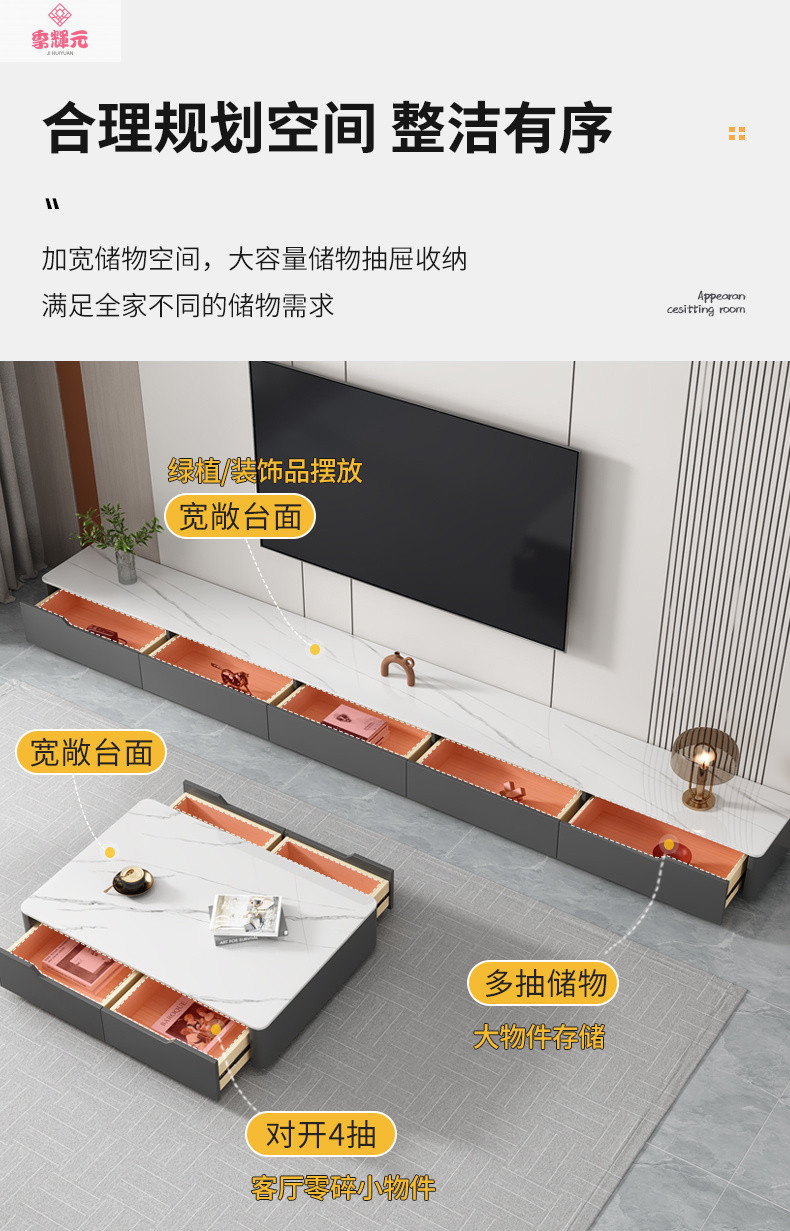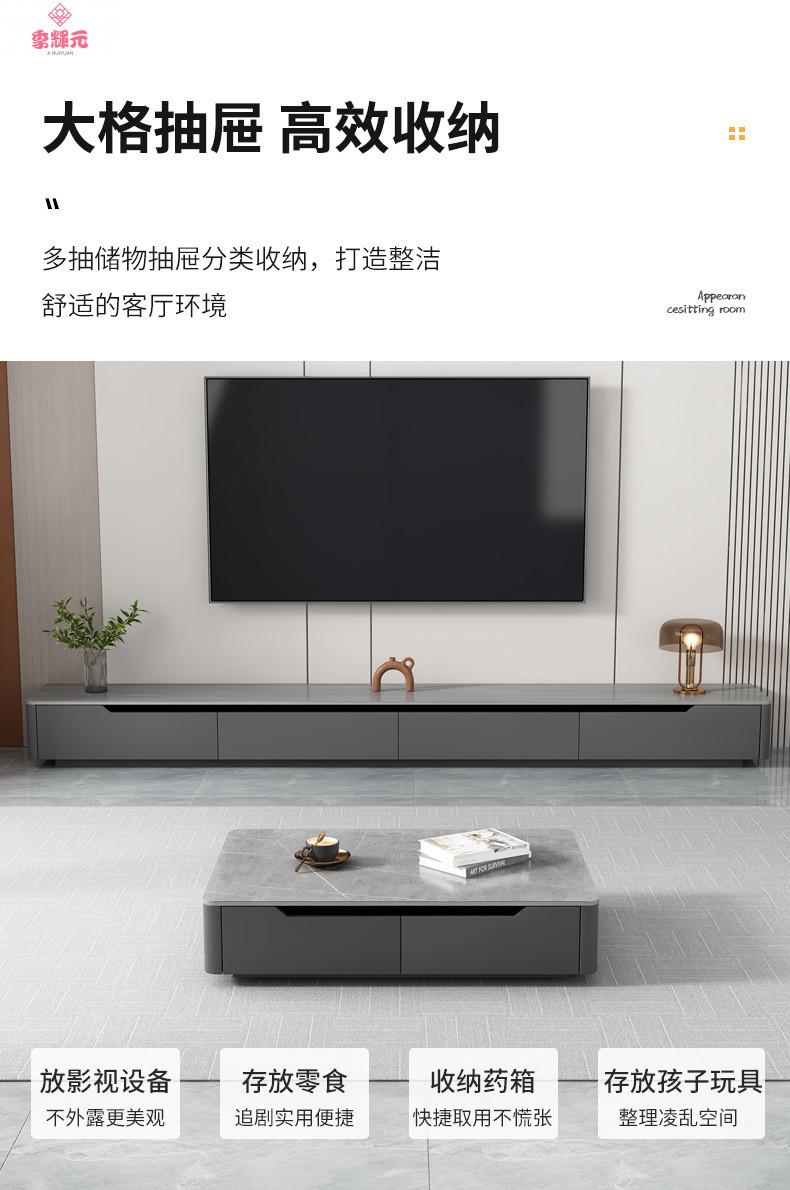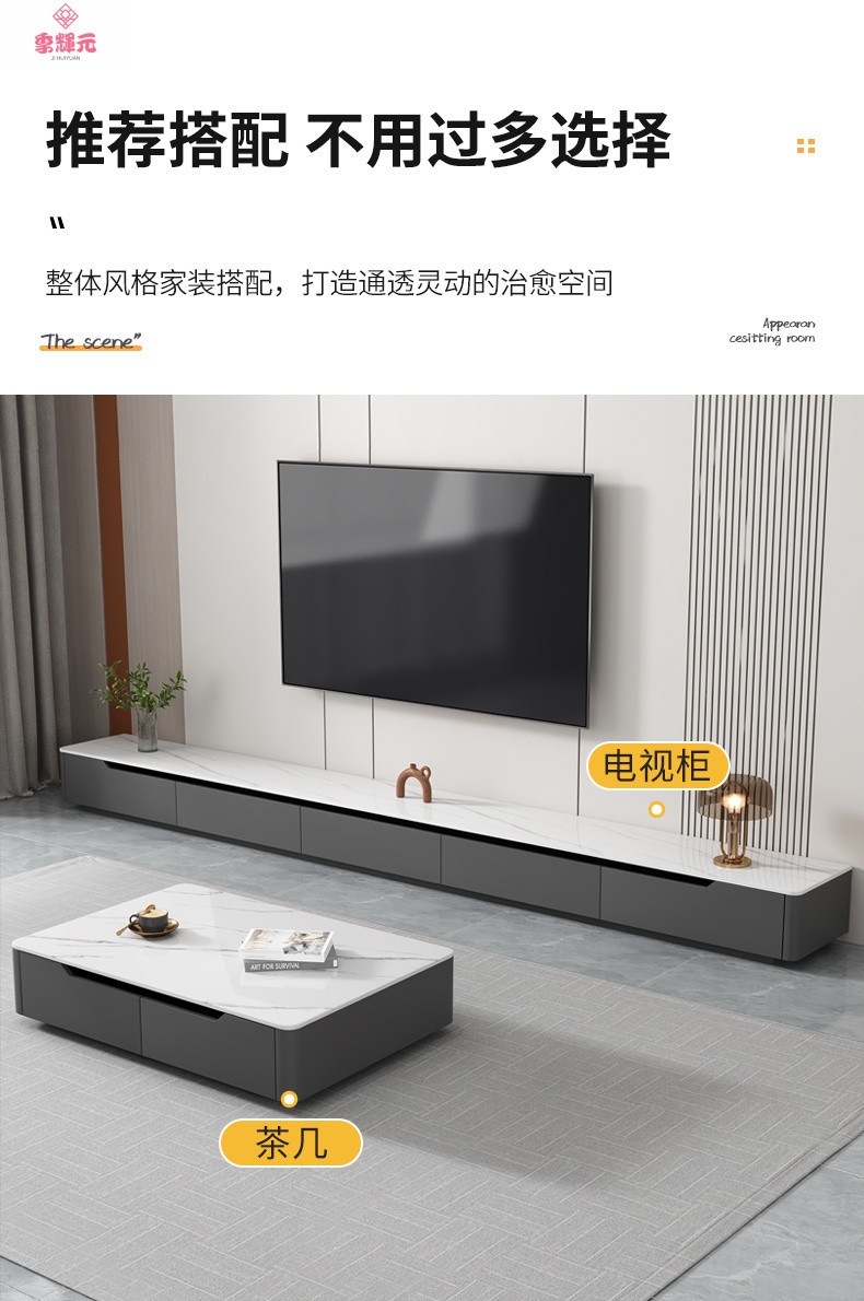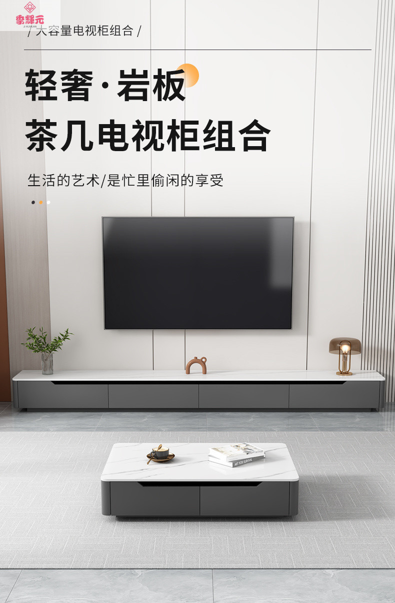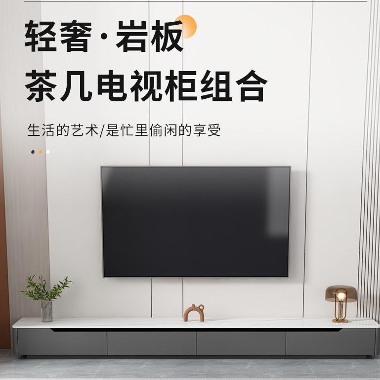 Тумба под телевизор в стиле лайт-люкс, современный набор для гостиной: журнальный столик и напольная подставка для телевизора из сланца, новая модель 2026 года для небольших квартир