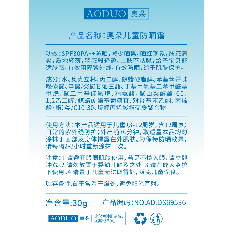 Детский солнцезащитный крем Odo (маленькая синяя кепка) 30 г
