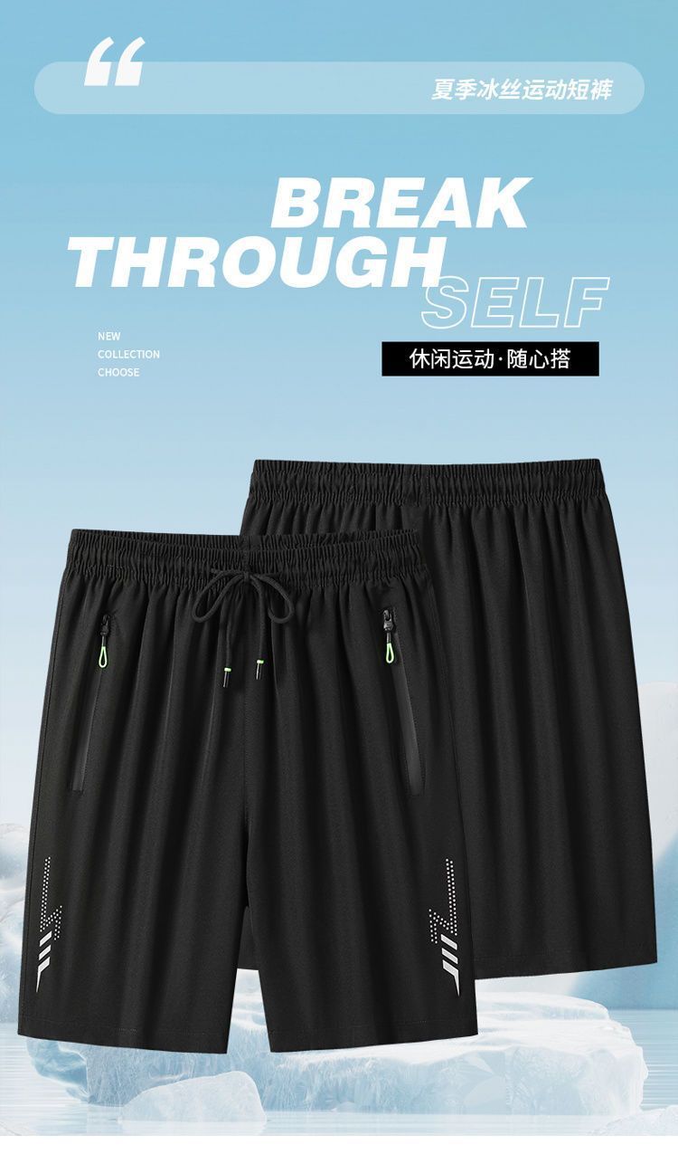 Мужские шорты, летние тонкие быстрые шорты из ледяного шелка, мужские спортивные свободные дышащие пляжные брюки