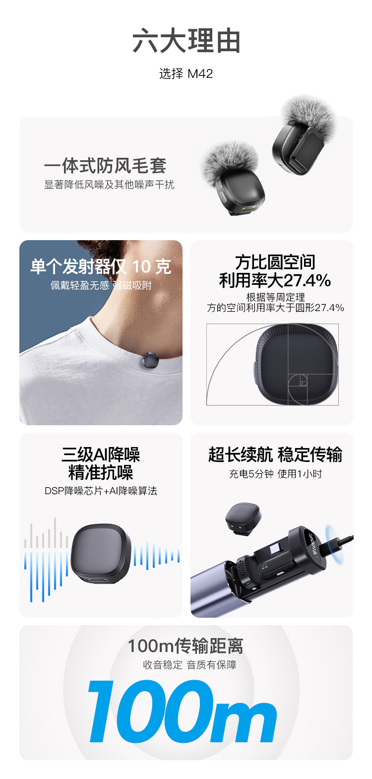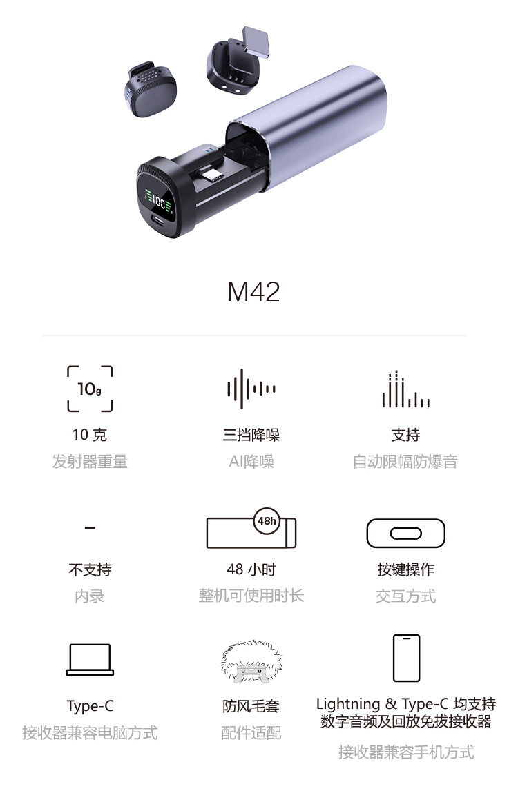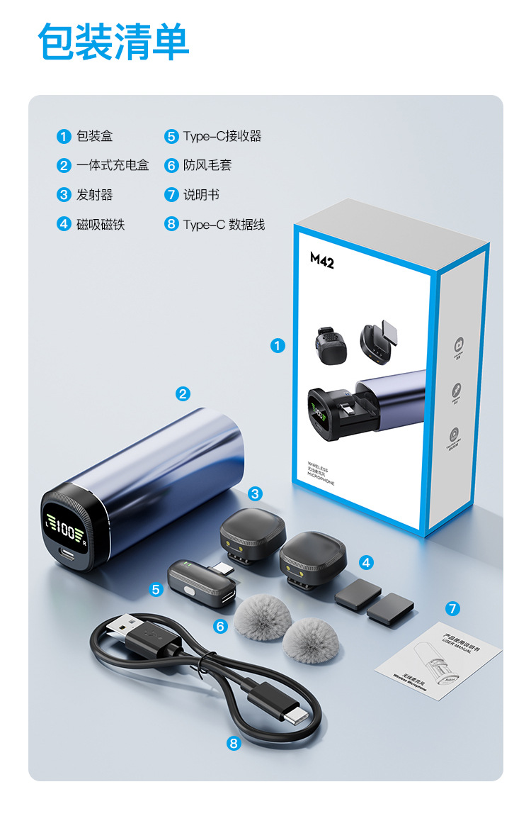 Новый беспроводной воротник M42 микрофон один перетаскивает два мини-маленький квадрат