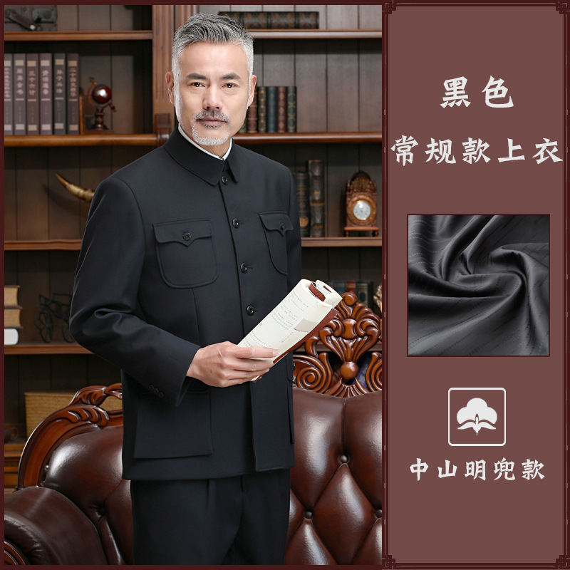 Мужской весенне-осенний костюм Чжуншань для мужчин среднего и пожилого возраста для домов престарелых, утепленный костюм Тан на флисовой подкладке, высококачественная одежда.