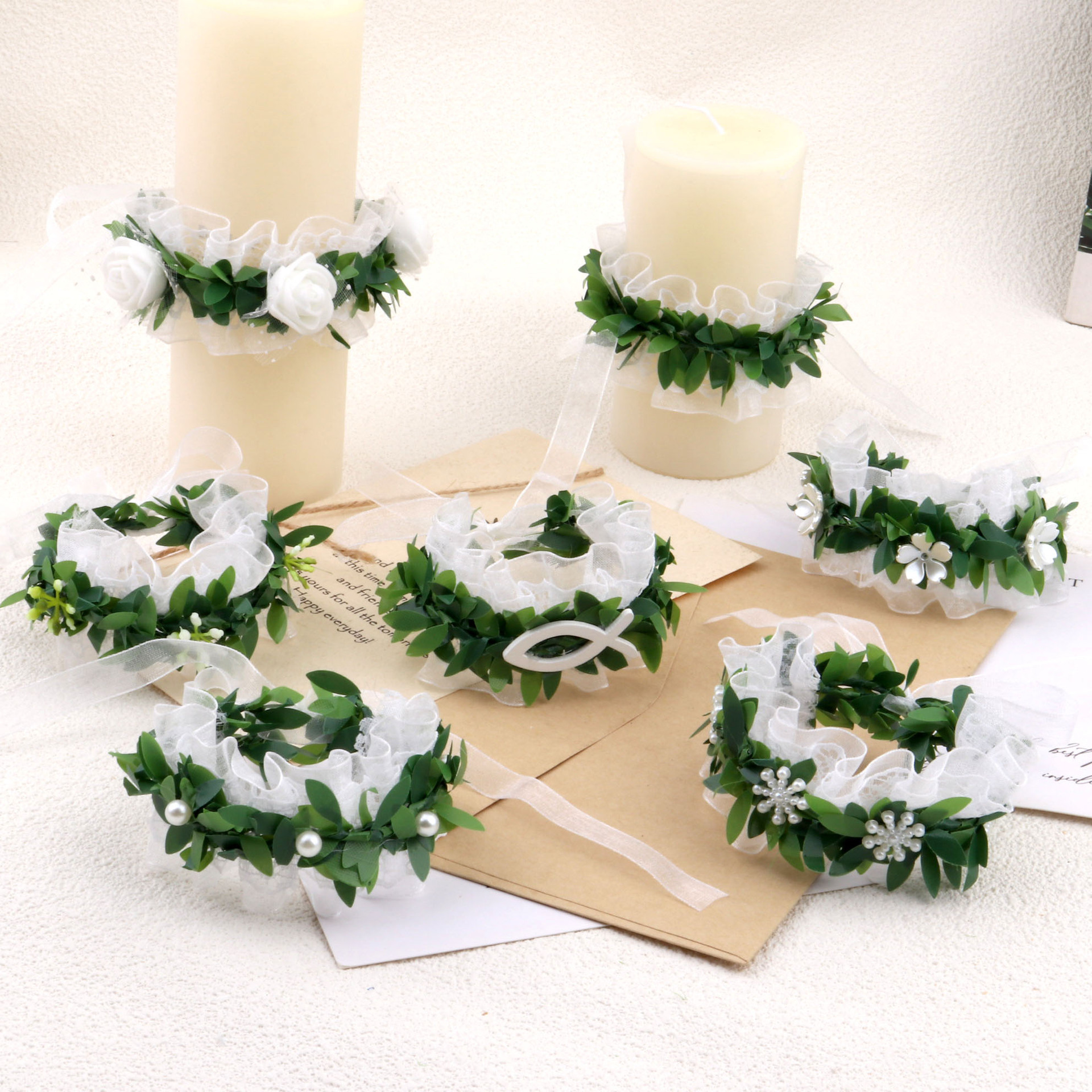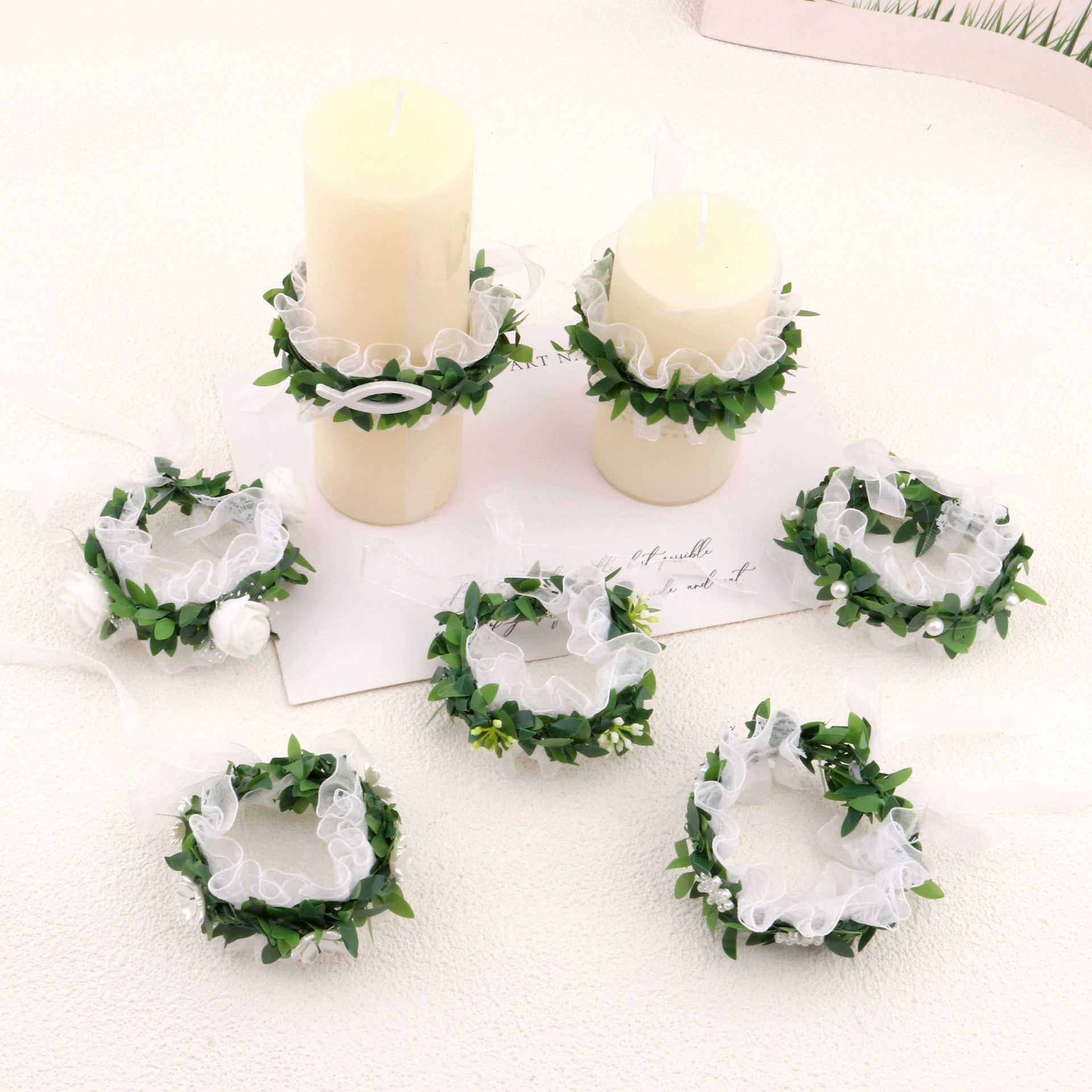 Кольцо для салфеток с рождественской цветочной лозой, зеленые листья, гирлянда из проволоки, зеленый ротанг, украшение для стола, домашний декор