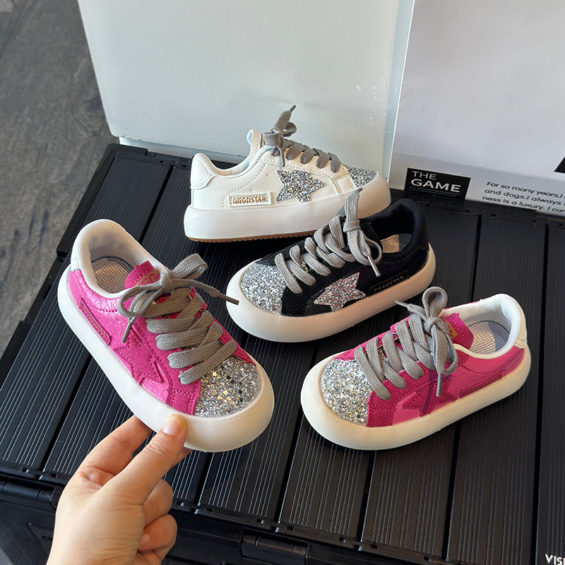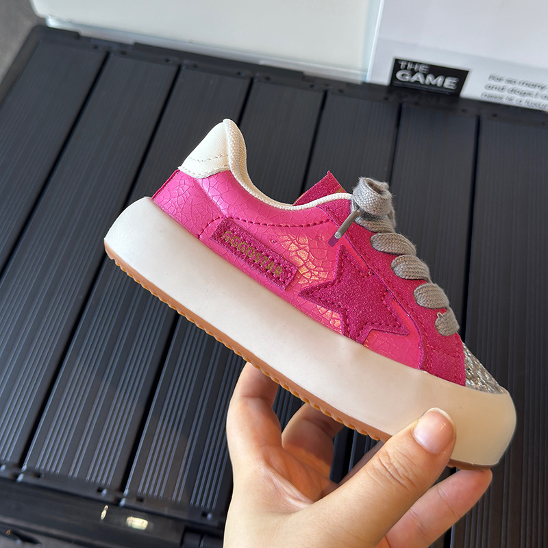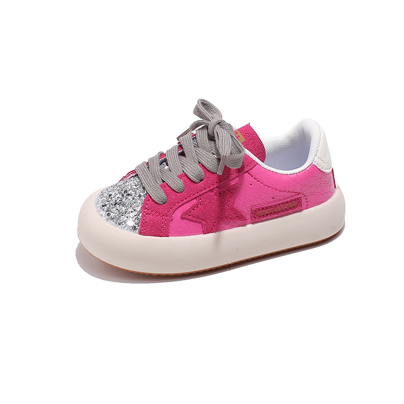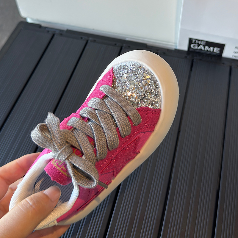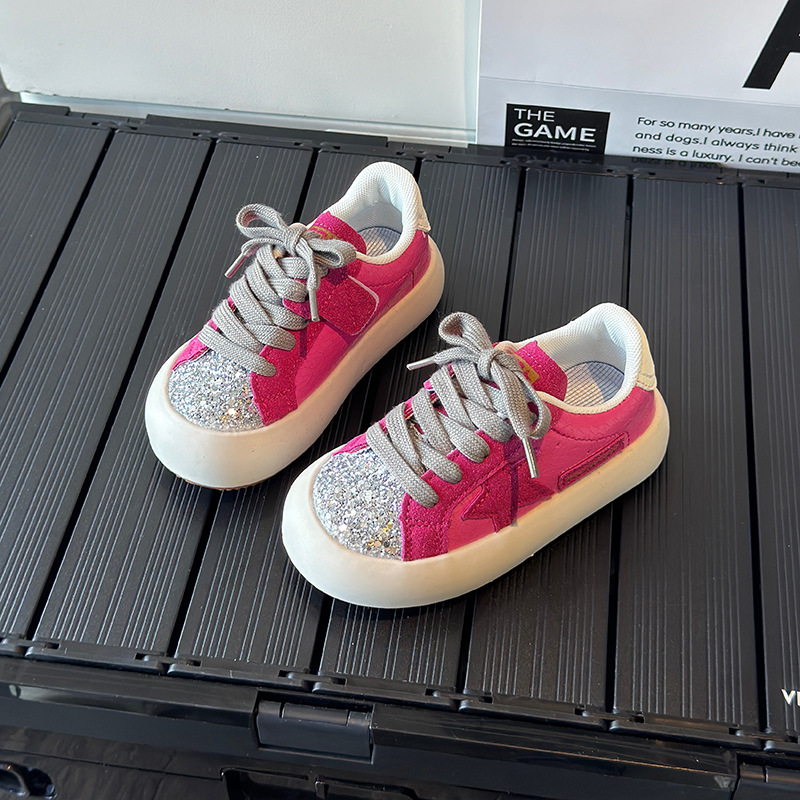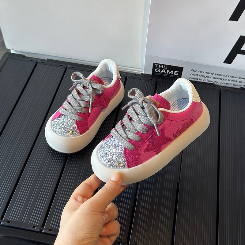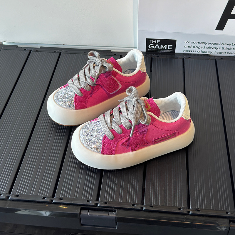 Детские кроссовки для девочек осень 2025, новые, с блестками, звёздочки, повседневные, маленькая девочка, цвет драконьего фрукта, низкие
