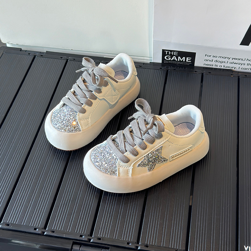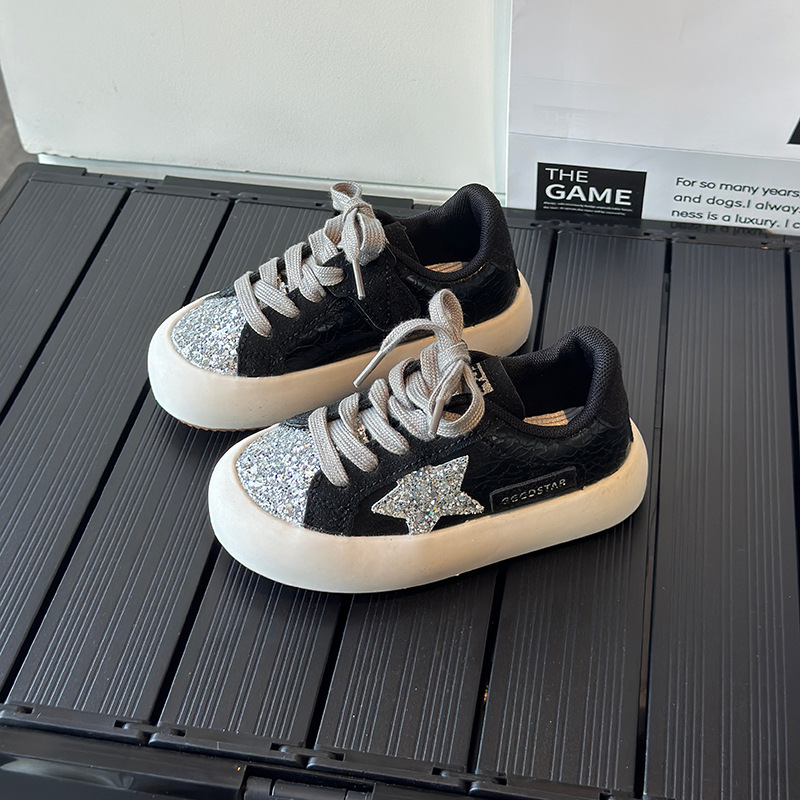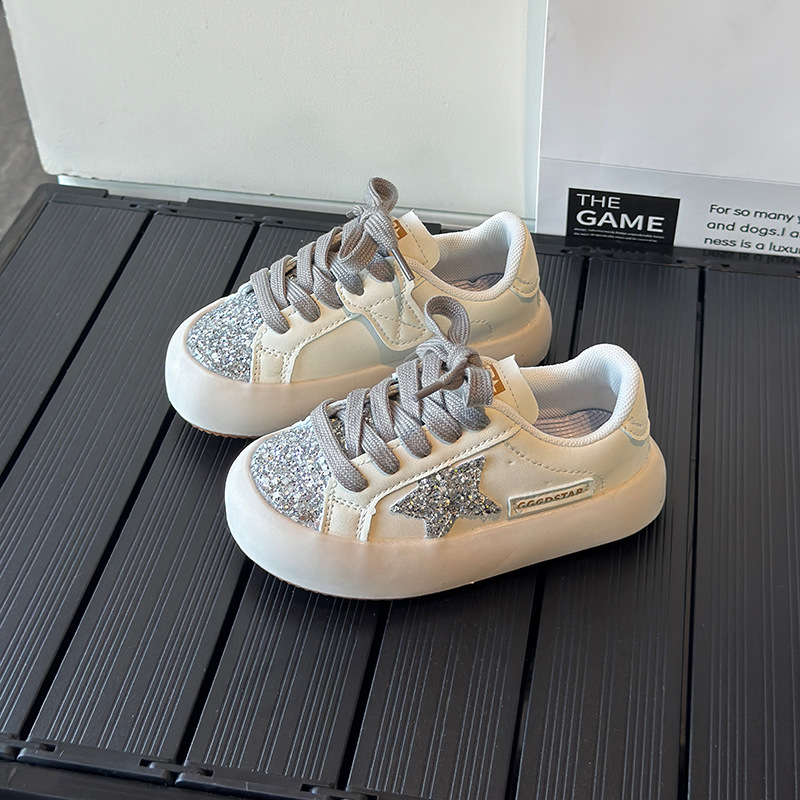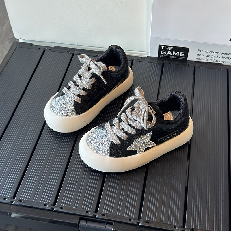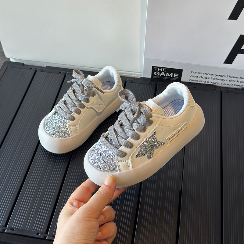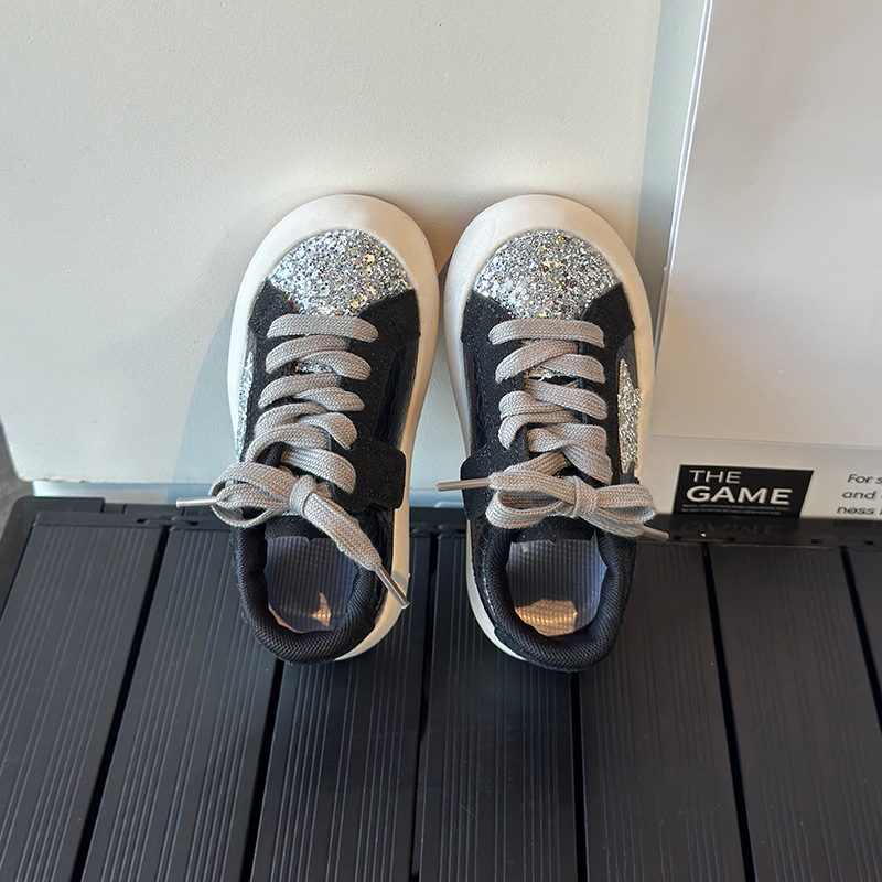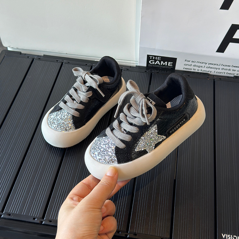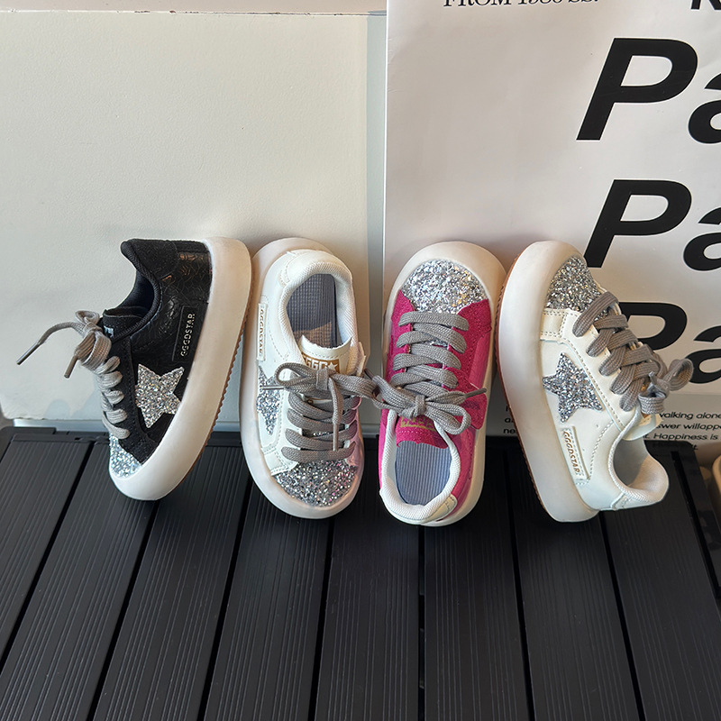 Детские кроссовки для девочек осень 2025, новые, с блестками, звёздочки, повседневные, маленькая девочка, цвет драконьего фрукта, низкие