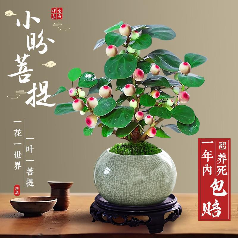Дерево Бодхи в горшке, бонсай Сяопан Бодхи с фруктами, китайские настольные украшения в стиле дзен, комнатные креативные, легко выращиваемые зеленые растения