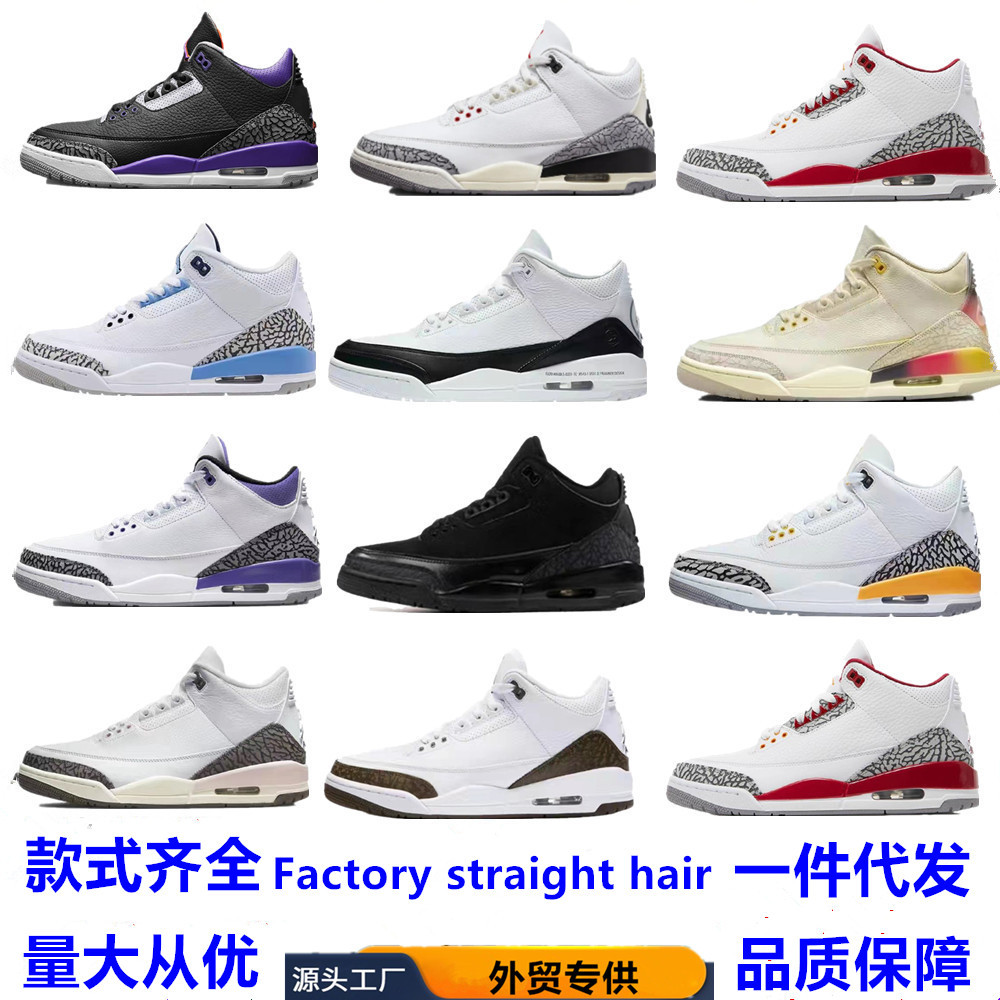 Обувная фабрика Путянь специализируется на внешней торговле мужской и женской спортивной баскетбольной обувью aj3 белого цемента Fujiwara Hiroshi Black Warrior White Cat Joe 3.