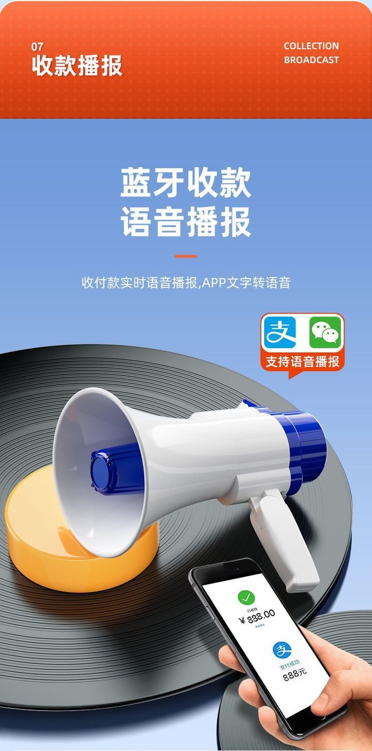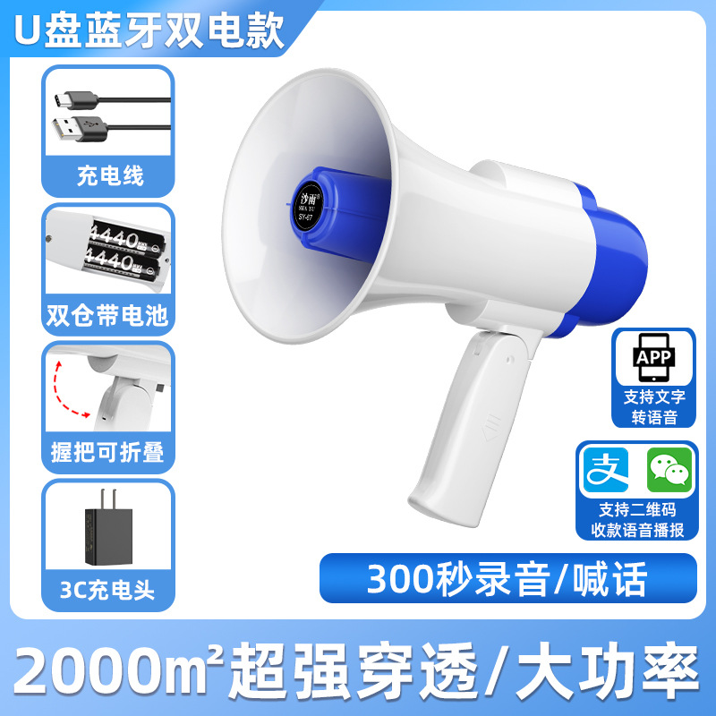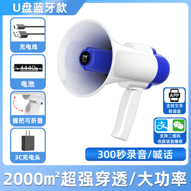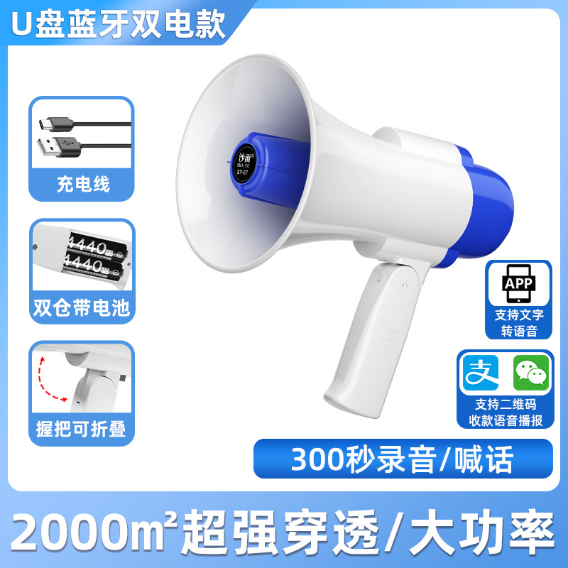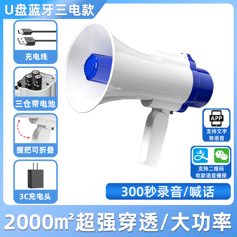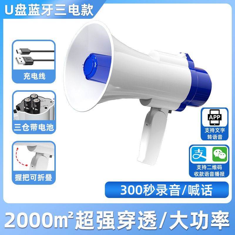 Громкоговоритель, мегафон, громкоговоритель для торговцев, громкоговоритель для записи голоса уличных торговцев, голосовой оповещатель с поддержкой Bluetooth и функцией преобразования текста в речь