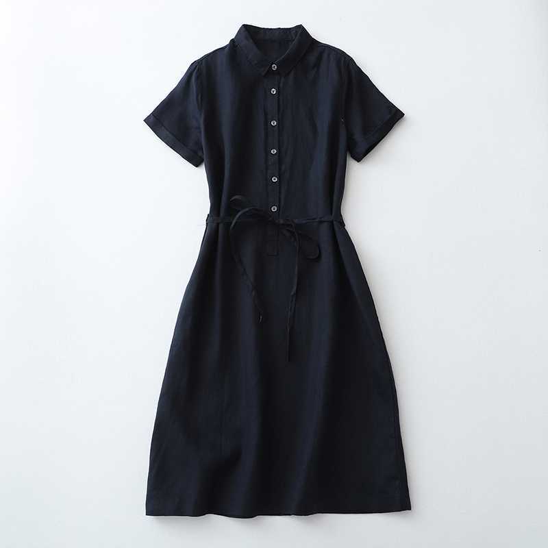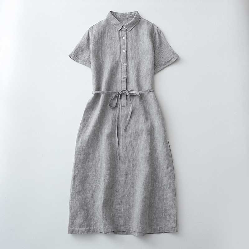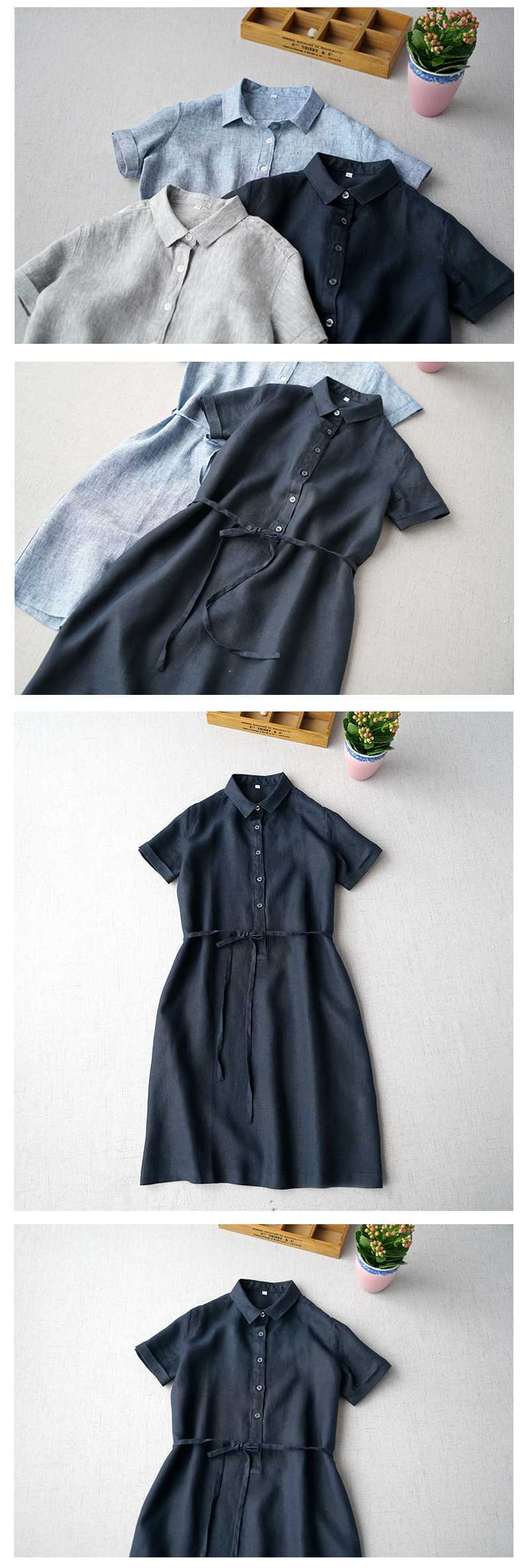 Летнее льняное платье-рубашка 2025 года, короткое, с завязками на талии, средней длины, удобный халат