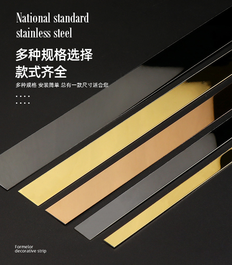 Плоская декоративная полоса из нержавеющей стали, металлическая линия, черный титановый потолок, фоновая стена, кромочная полоса из титанового сплава, самоклеящаяся