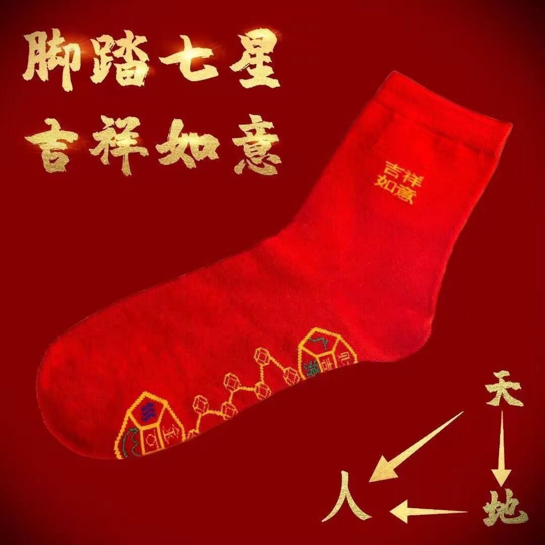 Педаль с семью звездами, носки с семью звездами, год кролика, год зодиака, праздничные красные впитывающие пот дезодоранты, утолщенные носки до середины икры для пар