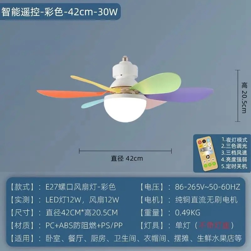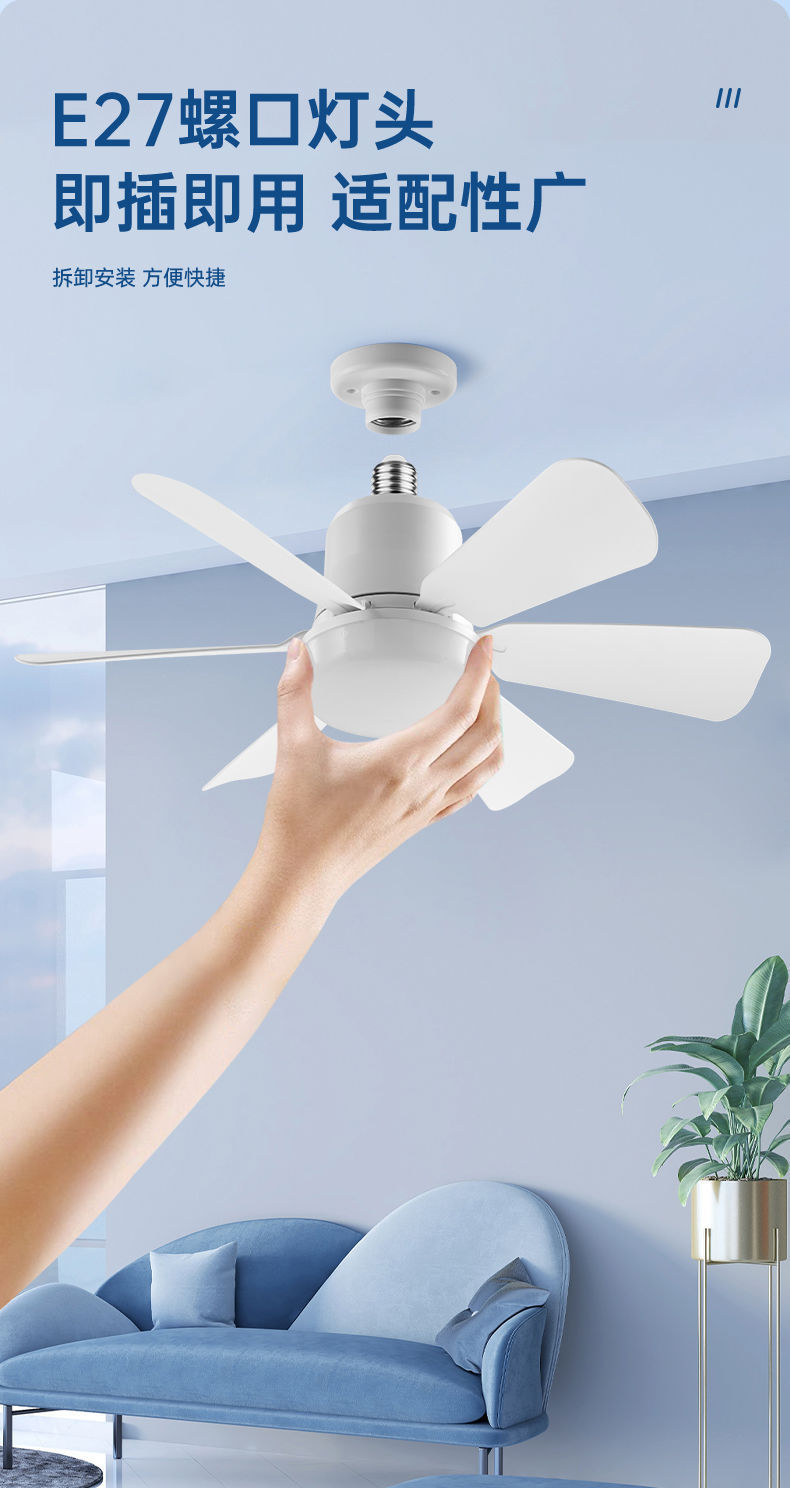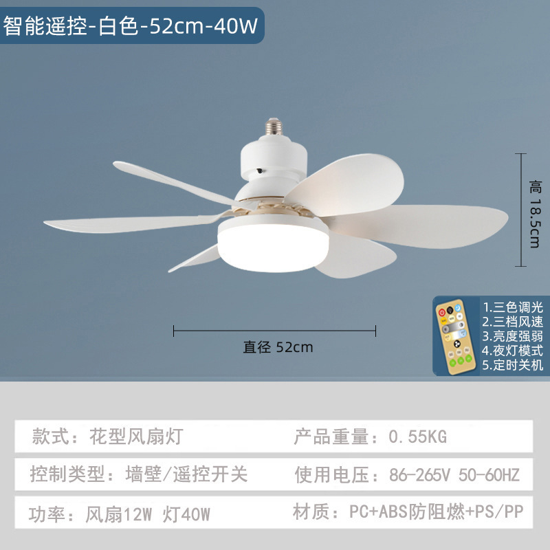 Новый светодиодный потолочный вентилятор с винтом E27, бытовой съемный вентилятор с высоким ветром, бесшумный вентилятор в форме цветка с шестью лопастями