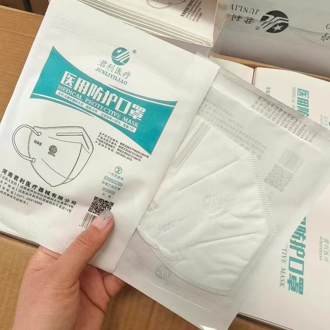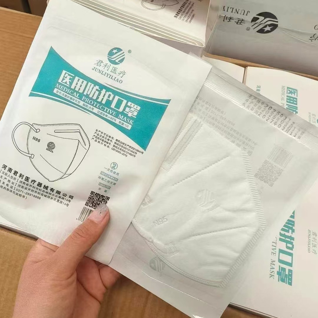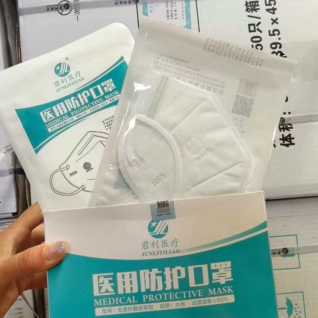 君利n95医用口罩,独立包装,50个一盒,1200个一箱。