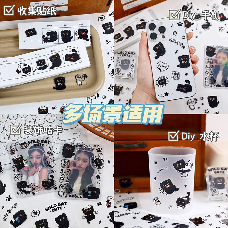 Черный котенок наклейка ins ветер прозрачный ПЭТ водонепроницаемый наклейка милый DIY ручная наклейка для мобильного телефона чашка для воды наклейка