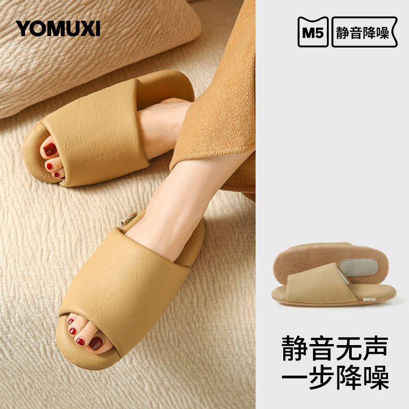 2025 новых бесшумных открытых тапочек на все сезоны, бесшумная деревянная подошва, для домашнего использования, мягкая подошва из искусственной кожи, дышащие для мужчин и женщин