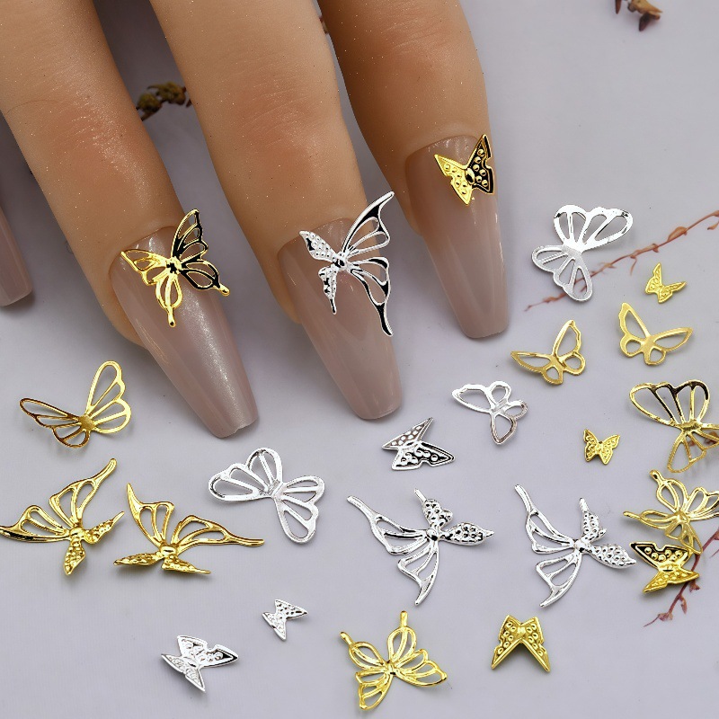 Прямые поставки с завода: металлические объемные аксессуары для ногтей (жидкое золото и серебро), декор для ногтей из Иу.