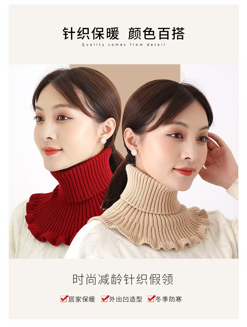 Женский шарф, вязаный шерстяной шарф, искусственный воротник, теплая защита для шеи, небольшая шаль, осенне-зимний пуловер, теплая защита для шеи