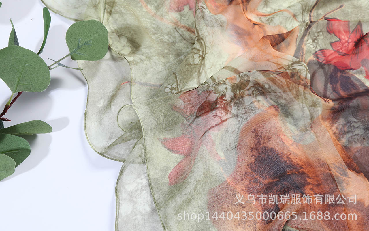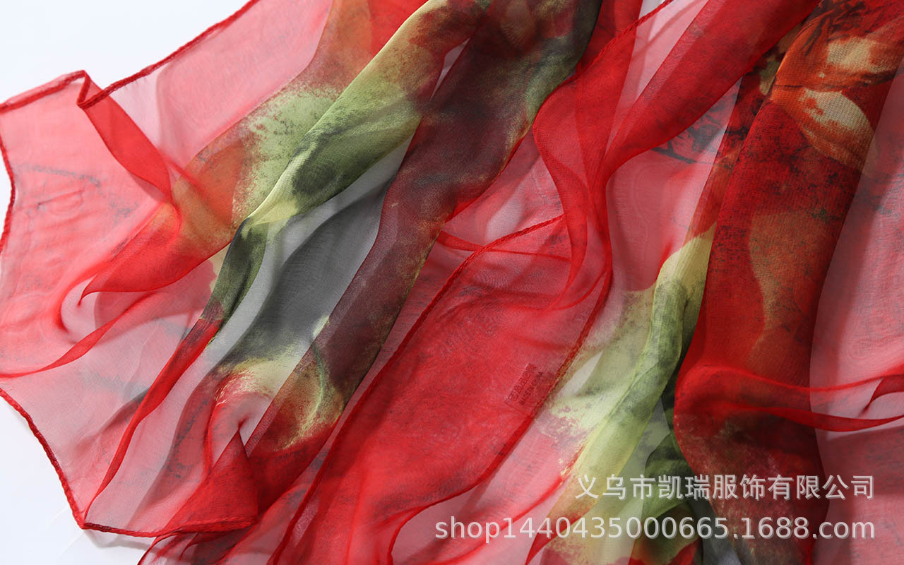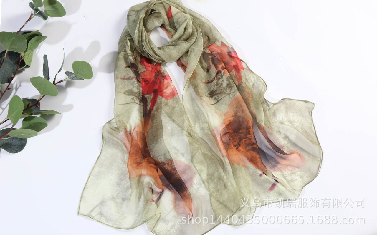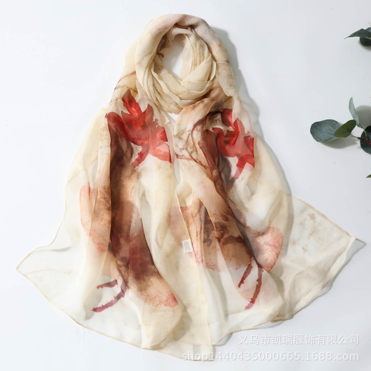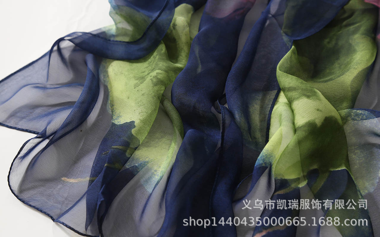 Jorqi пряжа на пляже солнцезащитный шаль женский весенний и летний тонкий шарф трансграничный затенение дышащий принт Мейлан декоративный шелковый шарф