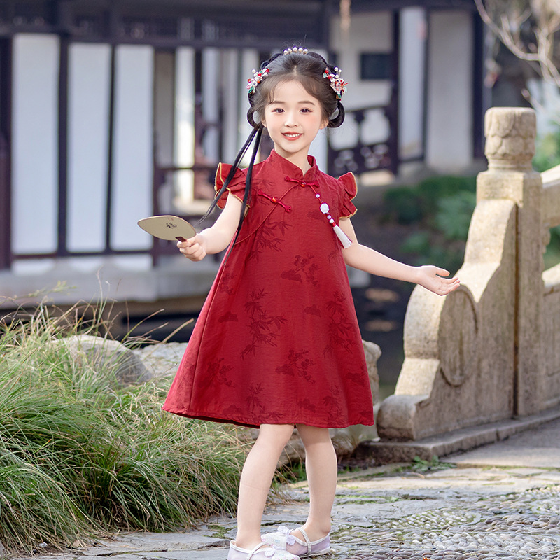 Костюм династии Хань в китайском стиле, летний детский костюм Тан, платье для девочек, новая рубашка с короткими рукавами в стиле шинуазри для мальчиков, комплект из двух предметов