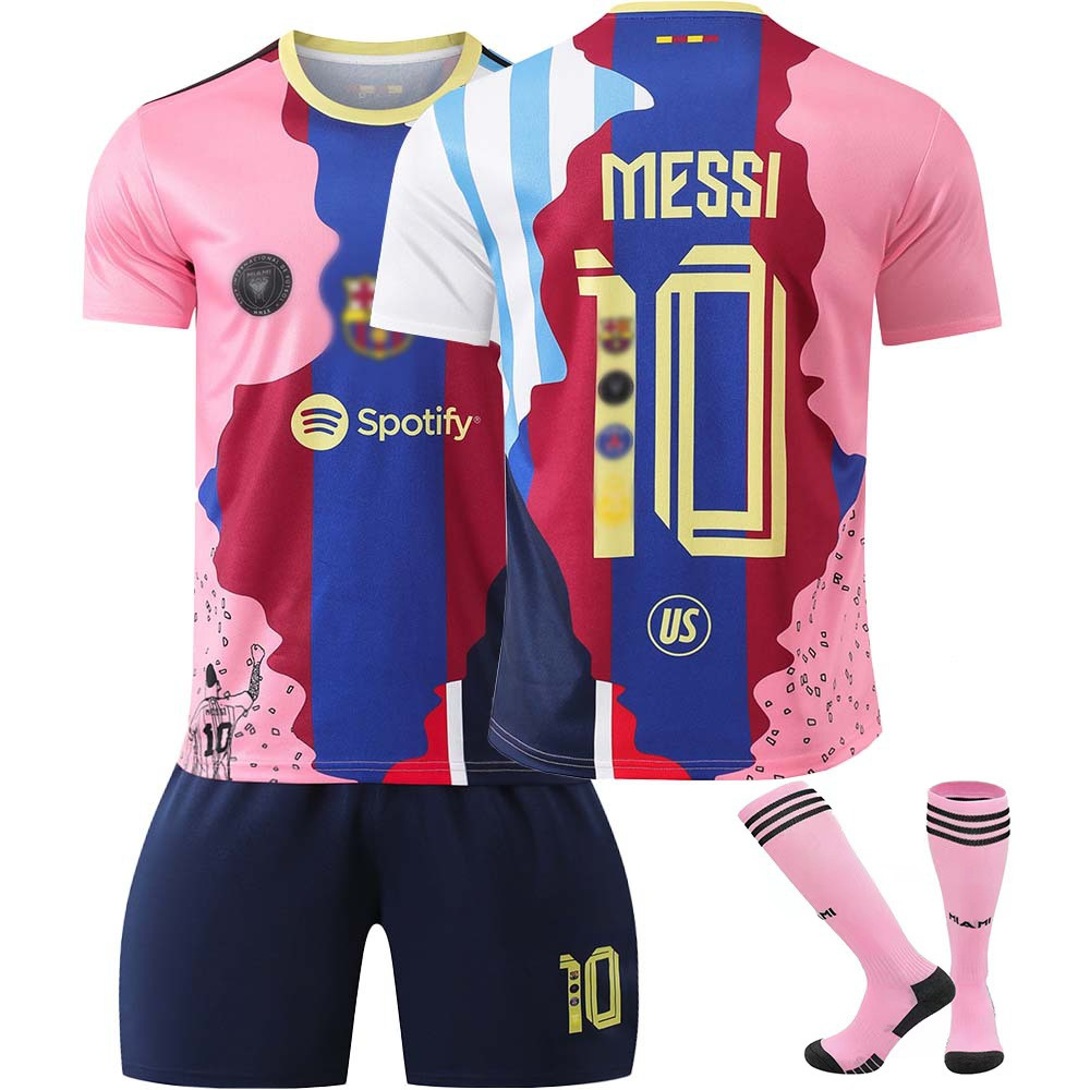 2526 Барселона Памятное издание Месси №10 Аргентина ретро футбольная форма Майами Детский и взрослый комплект джерси
