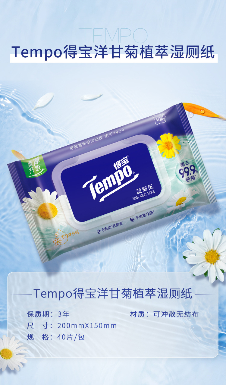 Влажная туалетная бумага Tempo Depot, цельные гигиенические влажные салфетки, портативная маленькая упаковка, влажная туалетная бумага, 40 шт./упак., влажная туалетная бумага, оптовая продажа