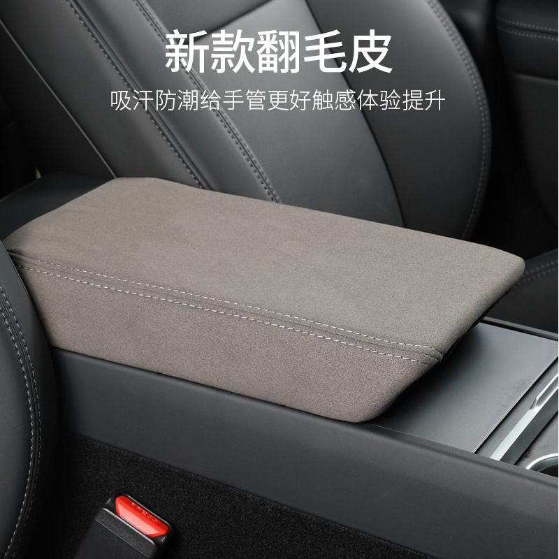 Подходит для новой версии Tesla Model 3 Y, крышка подлокотника, замшевая кожаная защитная накладка на центральный подлокотник