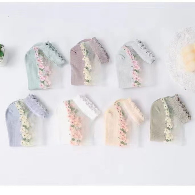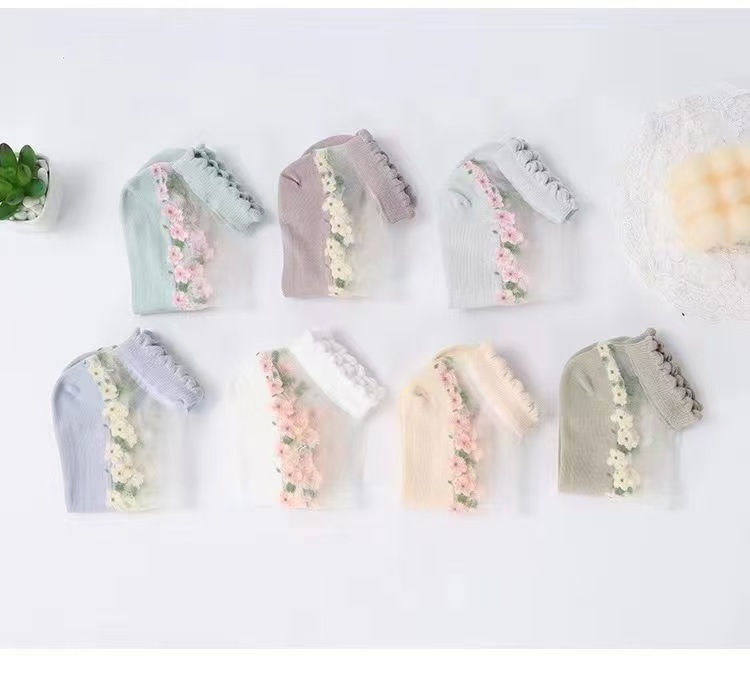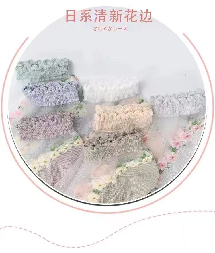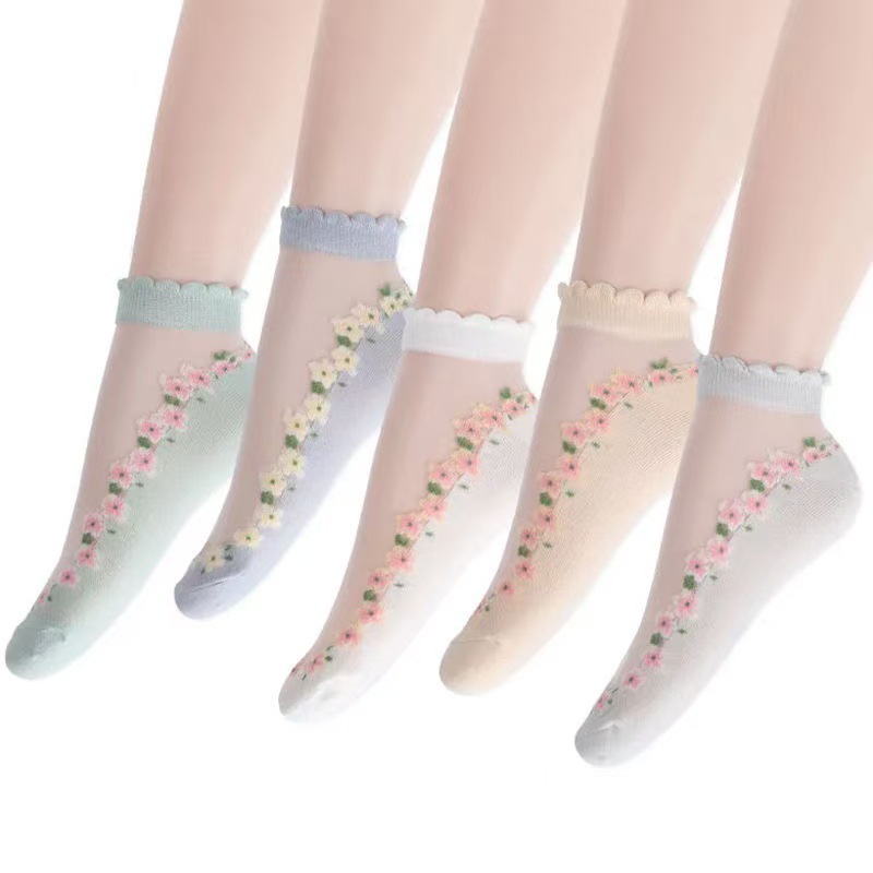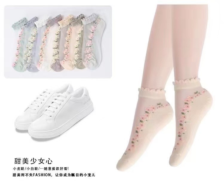 Модные женские стеклянные чулки, свежий стиль, дышащие, впитывающие пот, повседневные, милые, женские носки в цветочном стиле, кружевные носки