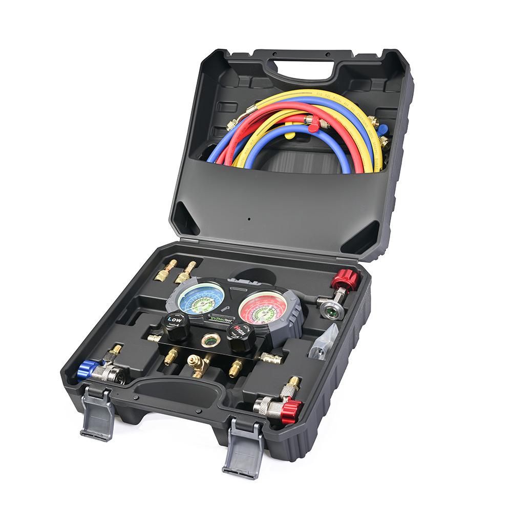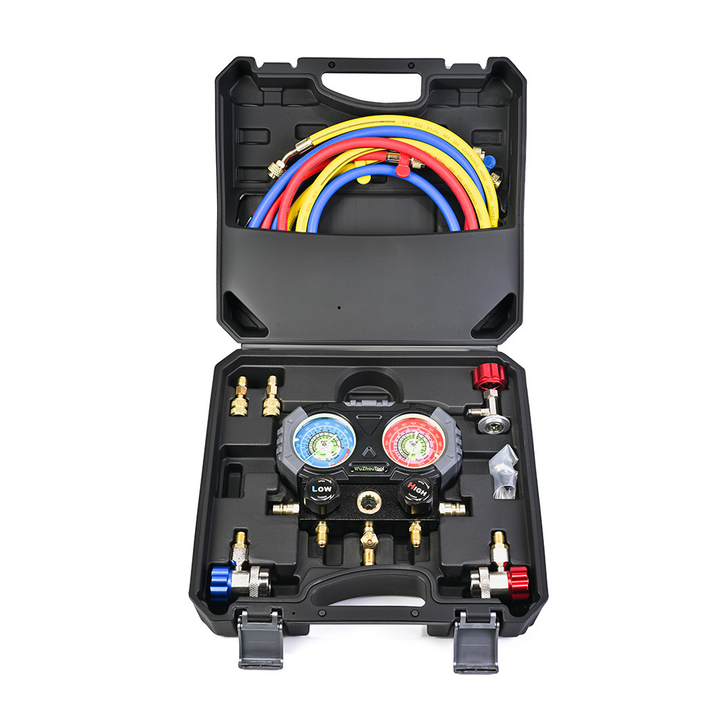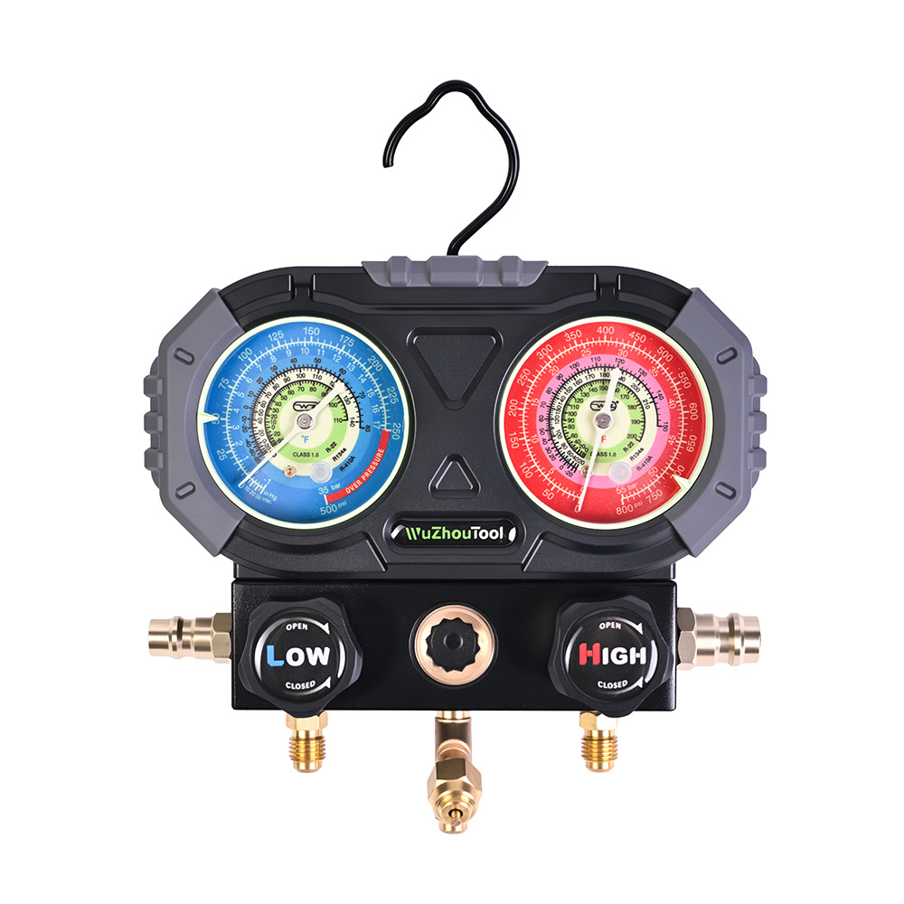 Новый светящийся антиколлизионный манометр для хладагента R134a/R-410A с измерителем фтора, двойной манометр, комплект клапанов