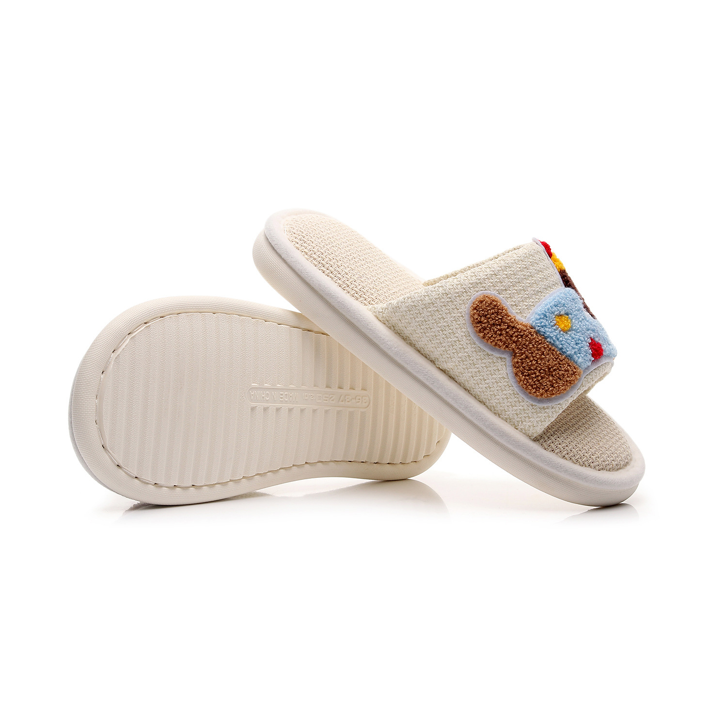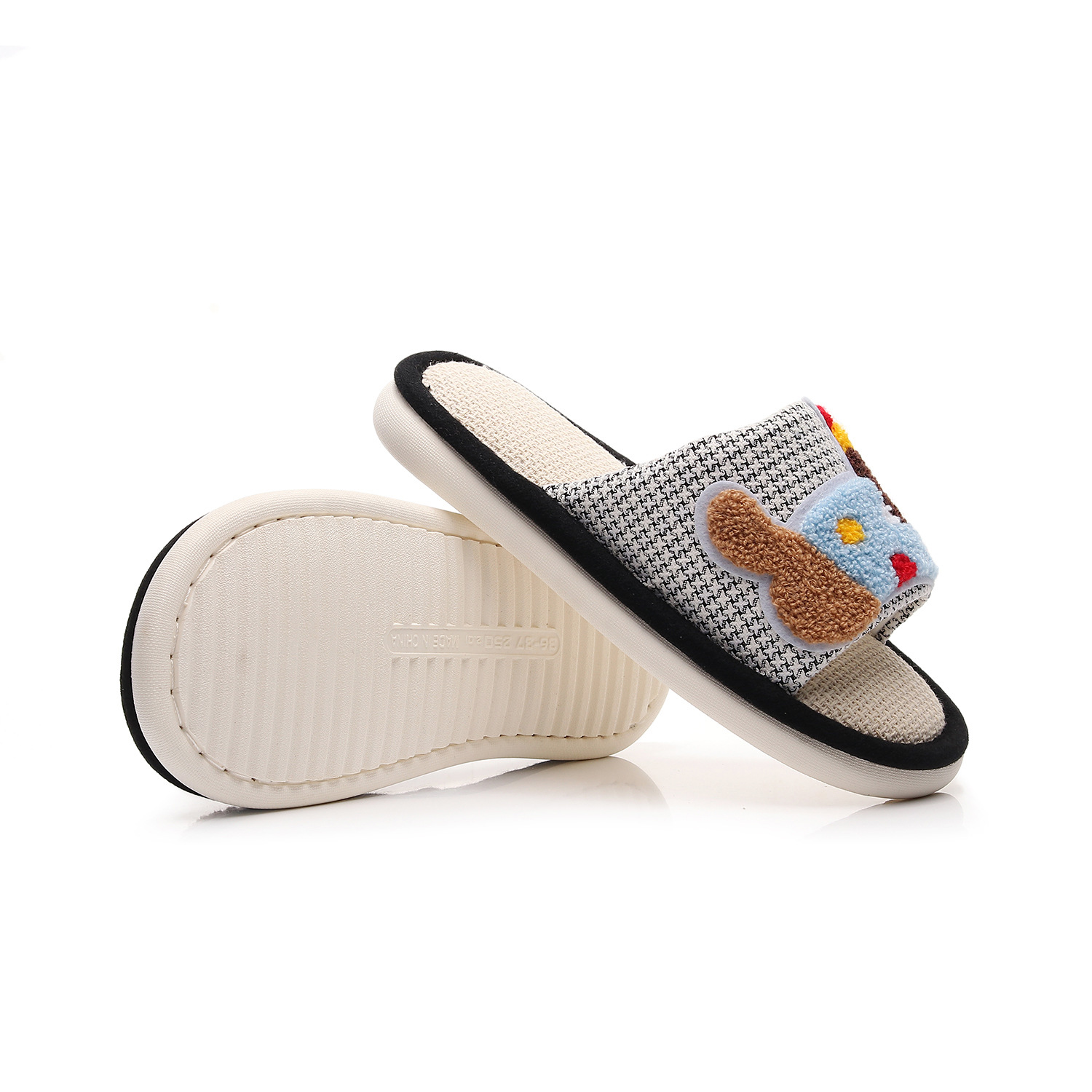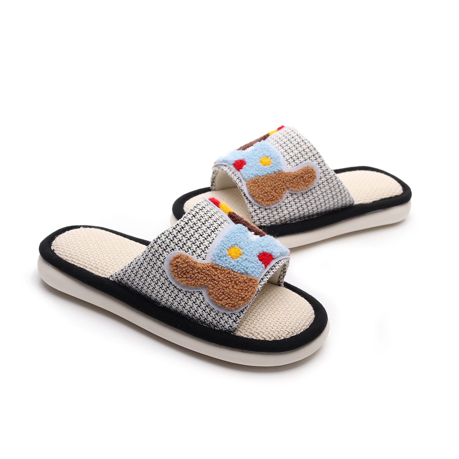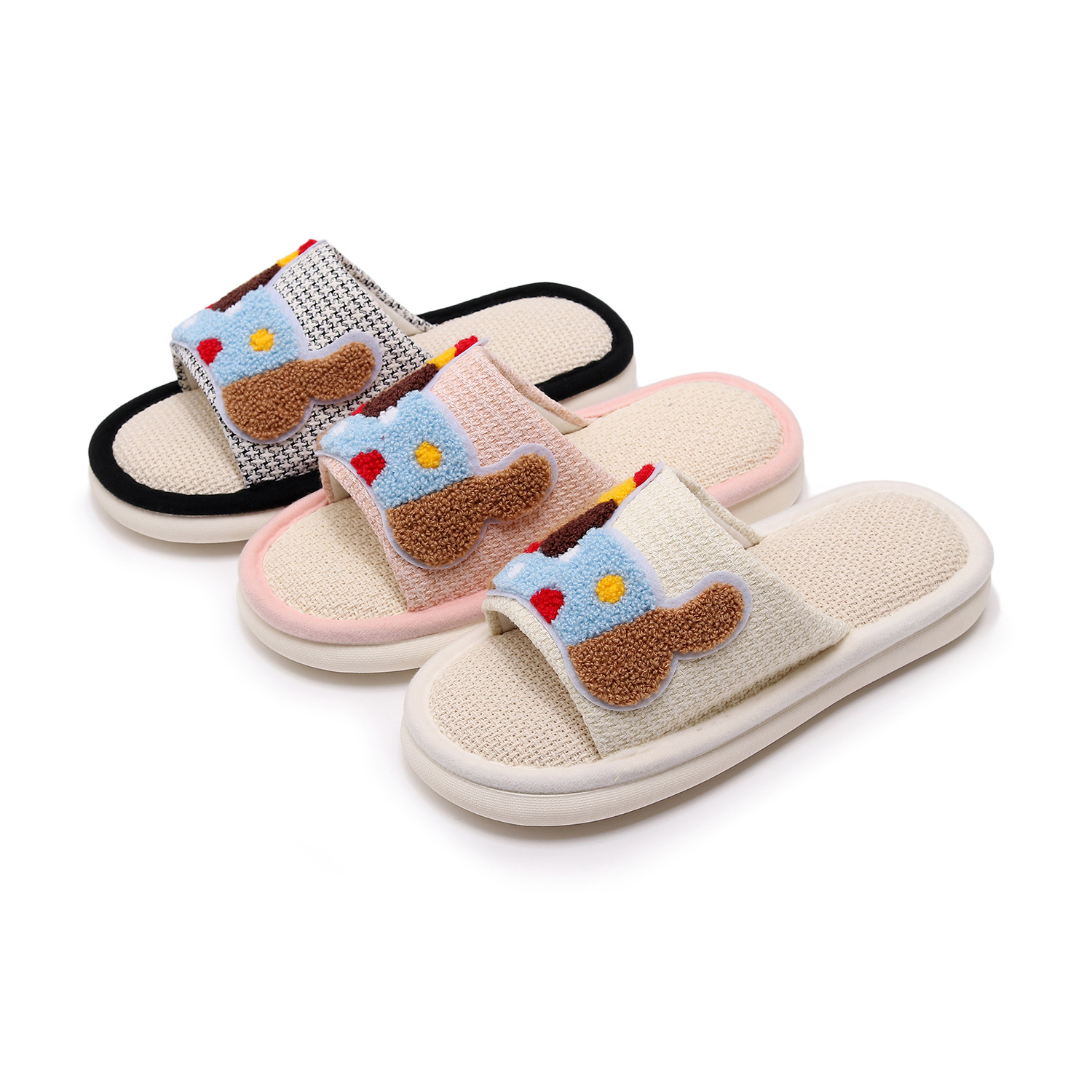 Льняная лапка на толстой подошве + красочная собачка [розовый]; Льняная лапка на толстой подошве + красочная собачка [белый]; Льняная лапка на толстой подошве + красочная собачка [черный]