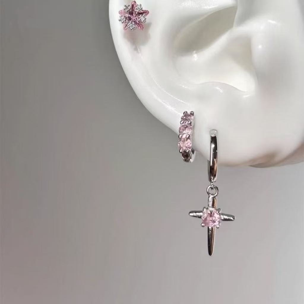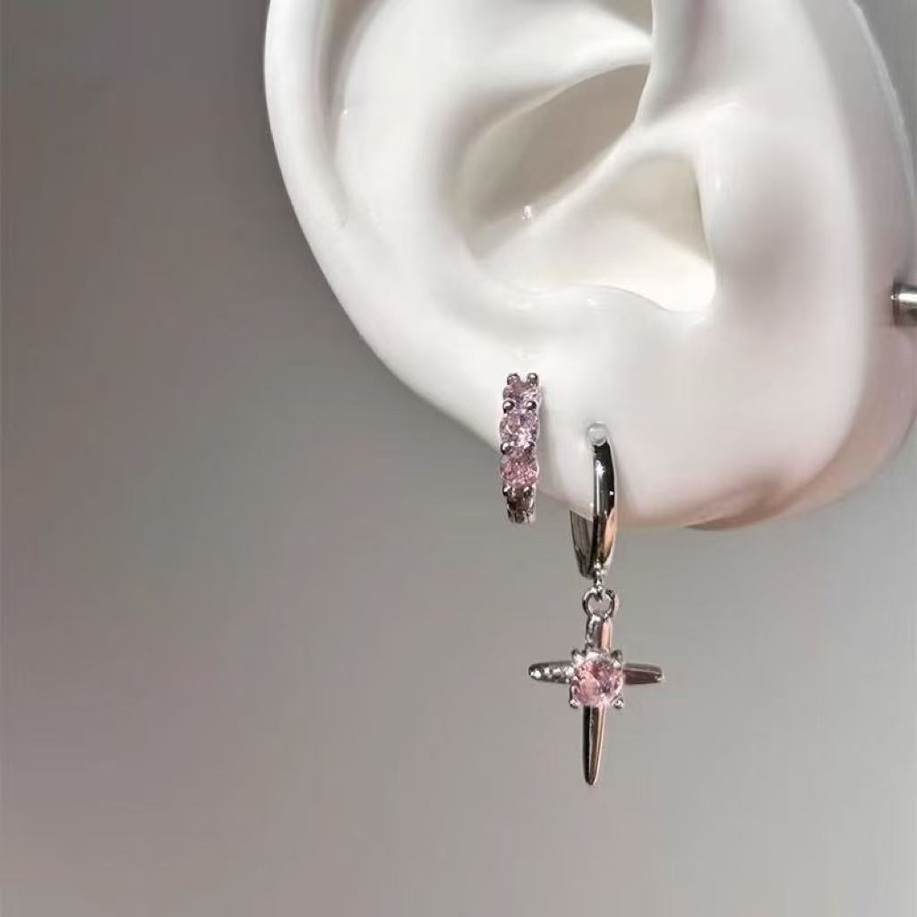 Новые простые серьги-подвески с розовым крестом, элитные студенческие вечерние милые и крутые серьги, универсальные серьги