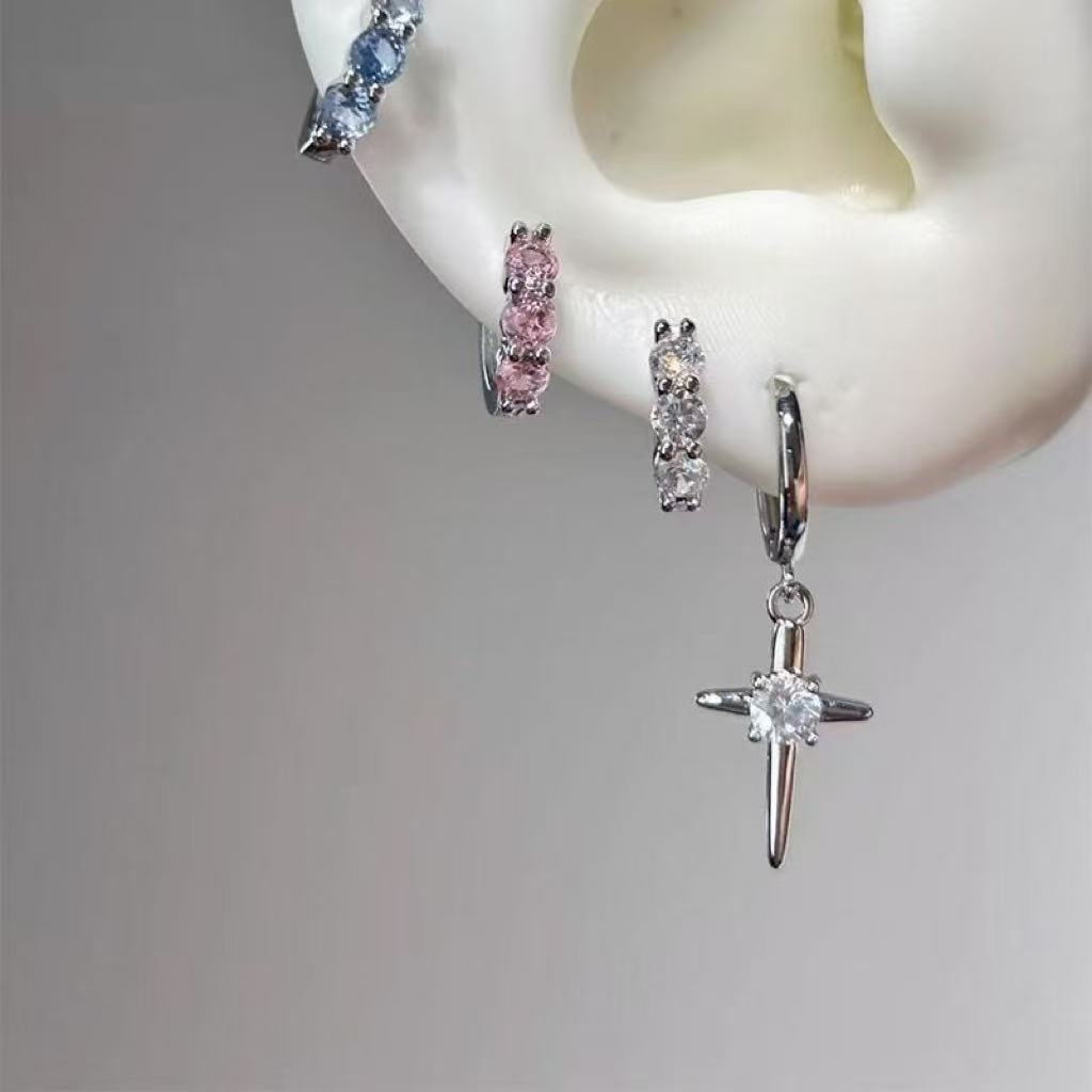 Комплект белых сережек; Комплект синих сережек; Комплект розовых сережек