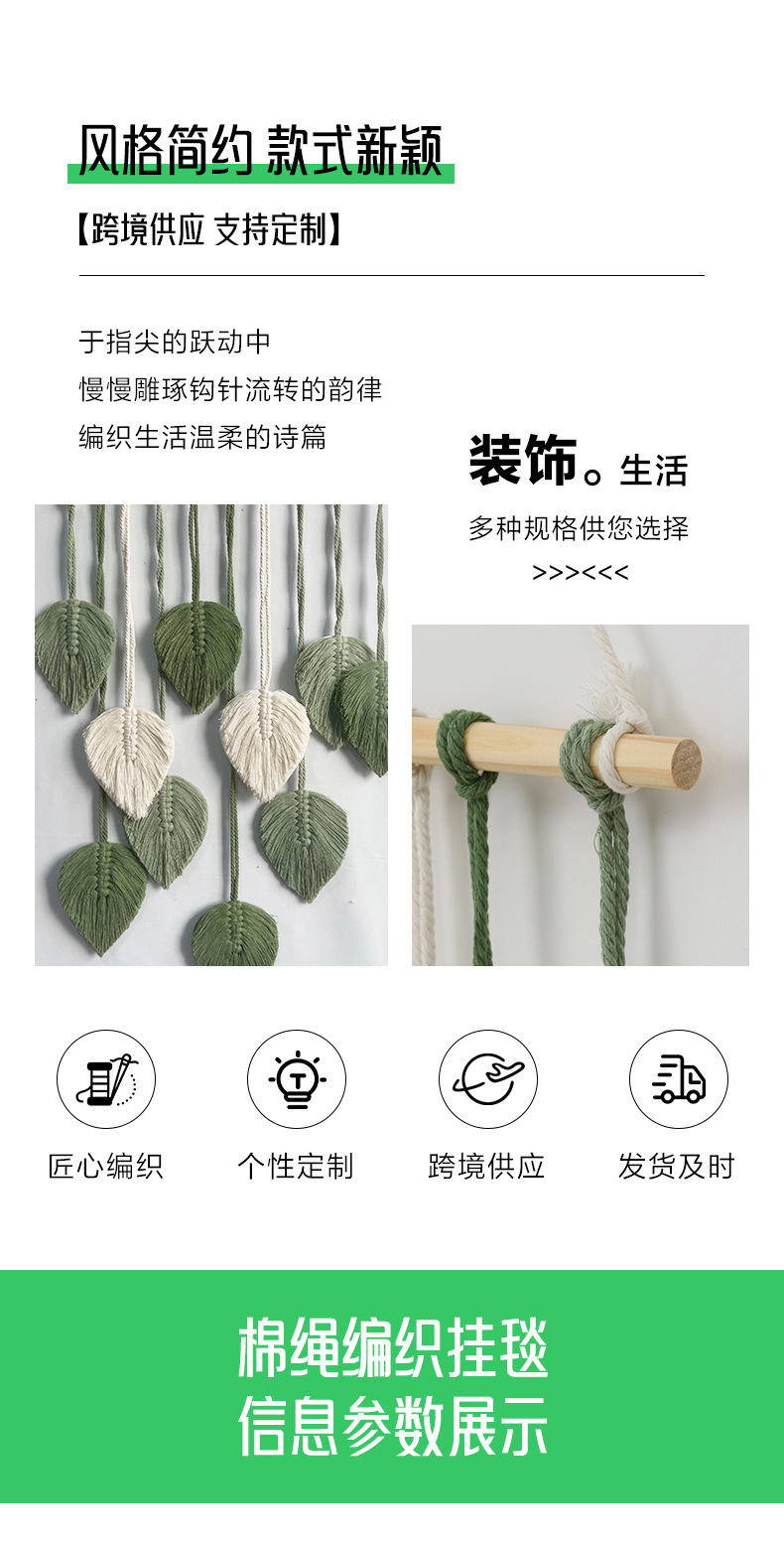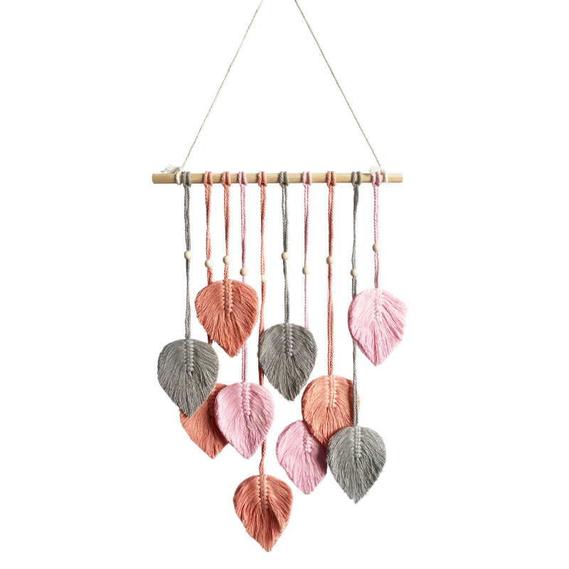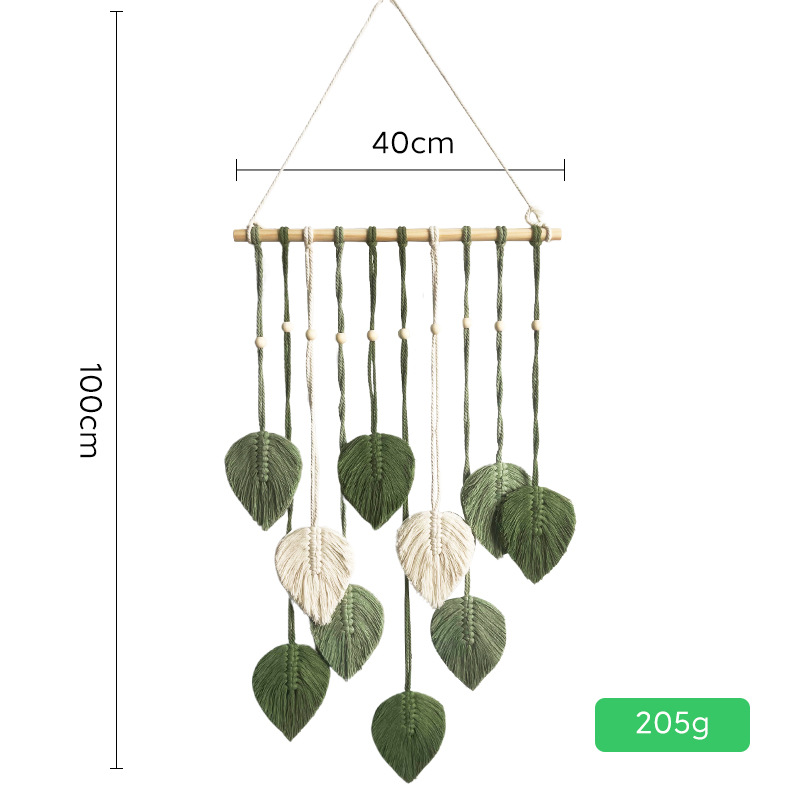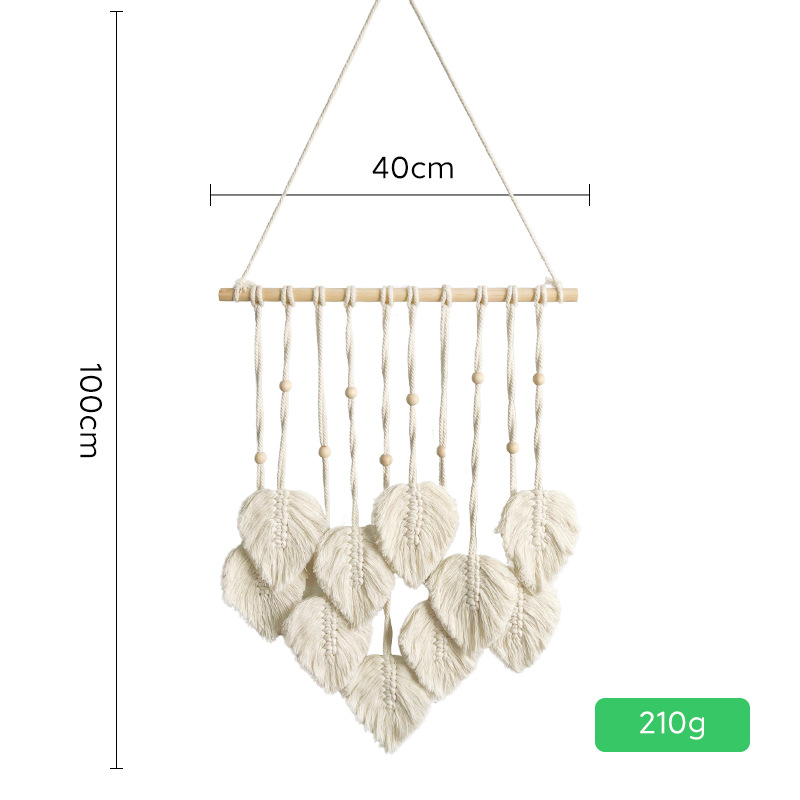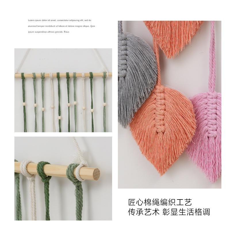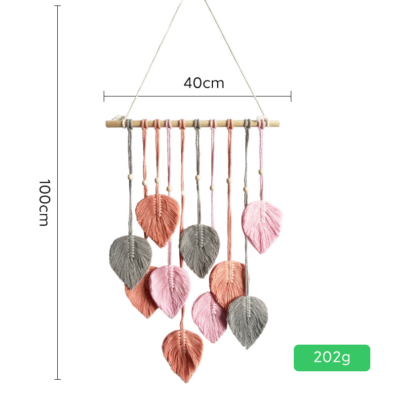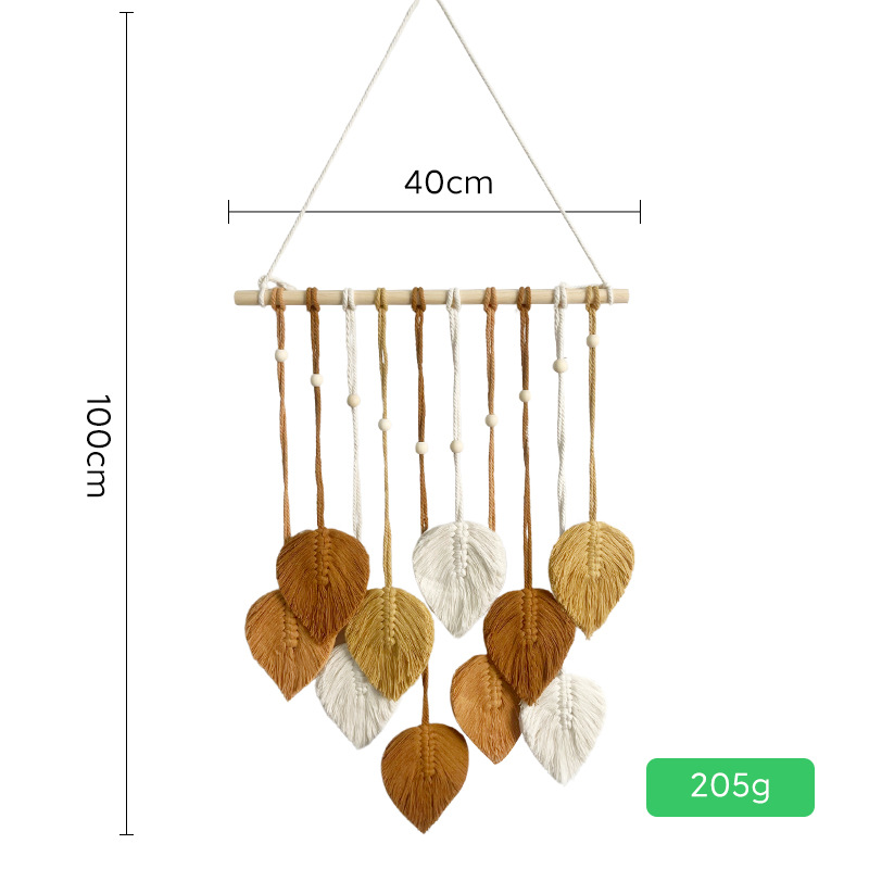 Скандинавский гобелен с листьями, ручной работы с деревянными бусинами, декоративное настенное панно, настенное украшение для прикроватной зоны, гобелен для гостиной