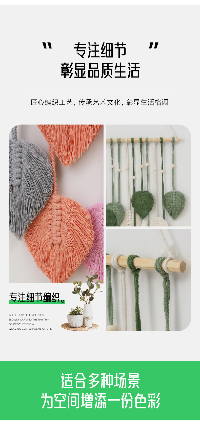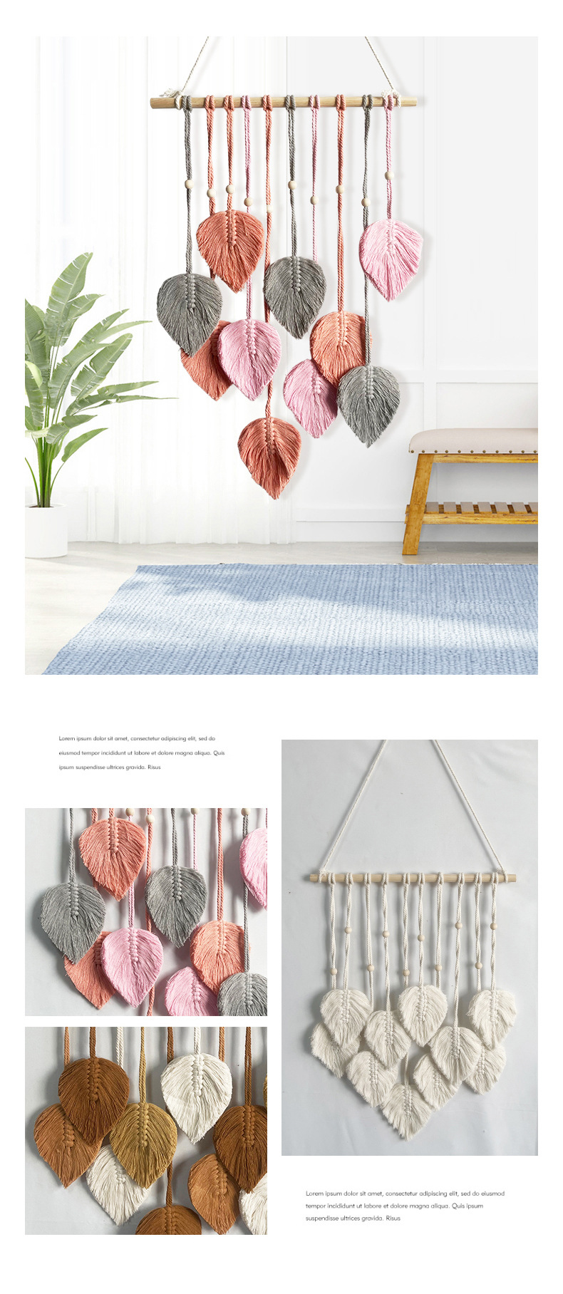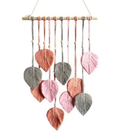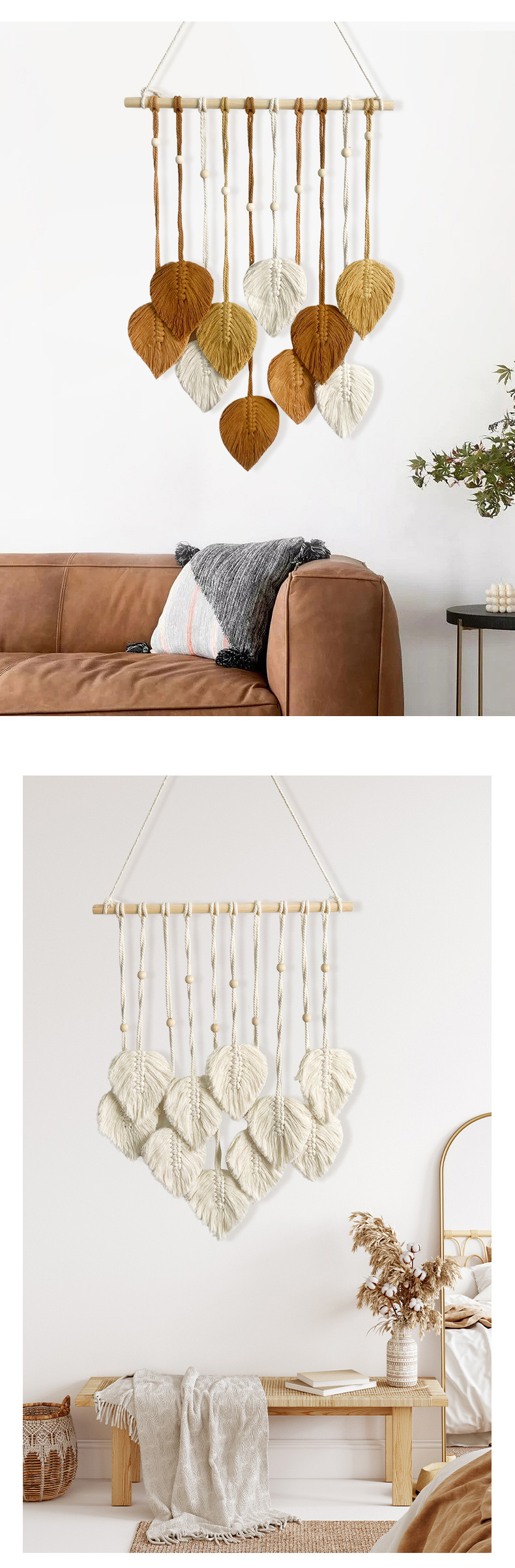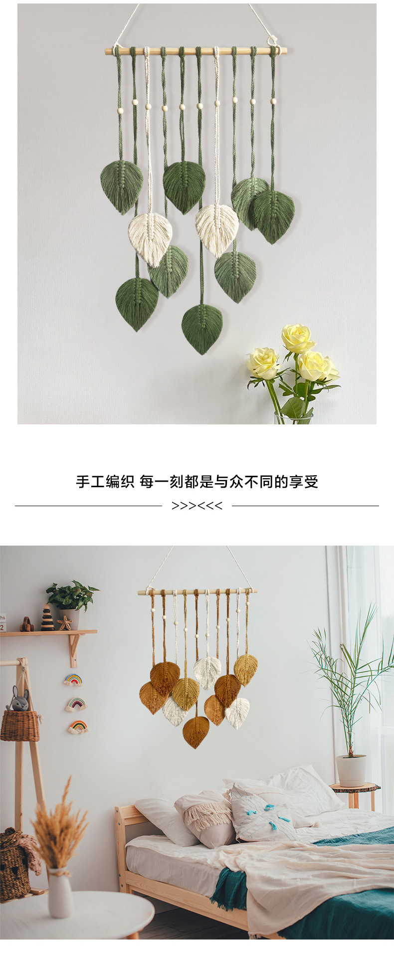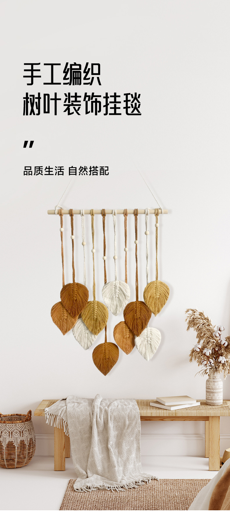 Скандинавский гобелен с листьями, ручной работы с деревянными бусинами, декоративное настенное панно, настенное украшение для прикроватной зоны, гобелен для гостиной